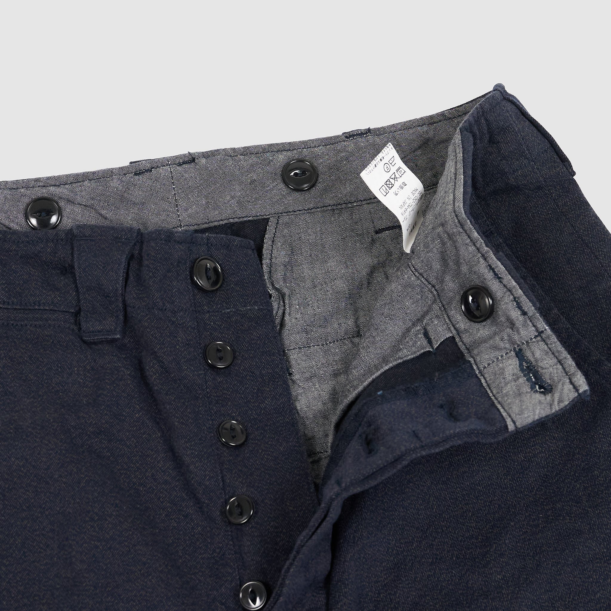 • Black chambray pocket and waistband lining