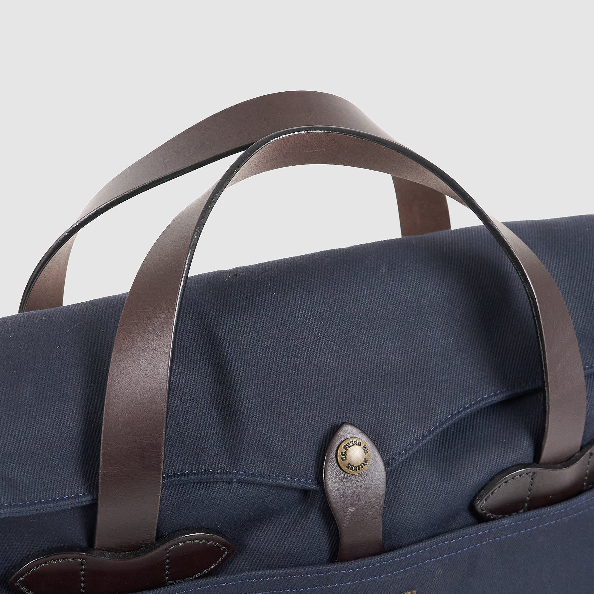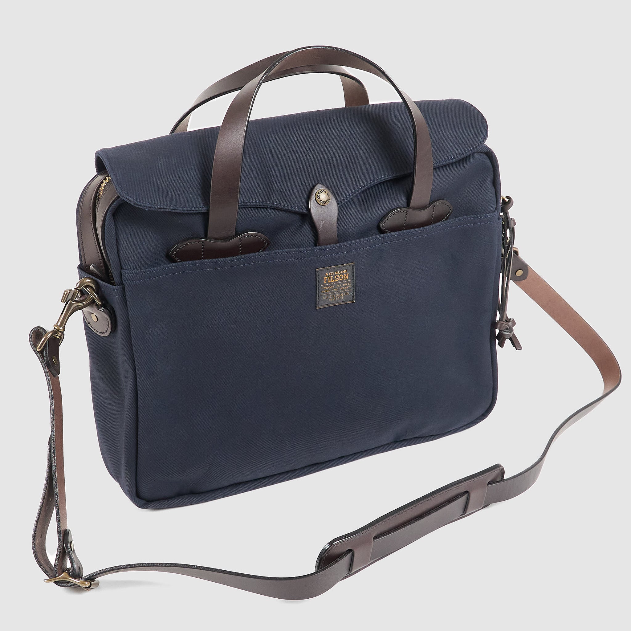 The classic Original Briefcase is built with the Filson signature Rugged Twill, an industrial-strength water-repellent fabric that resists wear and abrasion for years of dependable service. An adjustable Bridle Leather shoulder strap allows shoulder or cross-body messenger carry, and can be removed when you want to carry it by hand. The bag’s large interior compartment has dividers and slotted pockets for organization.