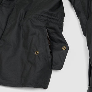 The Barbour x TO KI TO Bicycle Waxed Jacket is the result of a special 15-year collaboration between Barbour and TO KI TO, bringing together two brands with a keen eye for design and functionality. Every aspect of this jacket has been carefully considered for optimal practicality, whether standing or cycling. It features a shirt hem with an inner storm skirt to prevent drafts and an inner drawcord at the waist for a tailored silhouette. The functional hood can be adjusted around the face and nape of the neck to move with you.