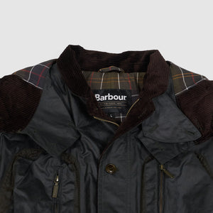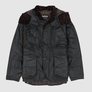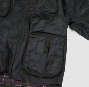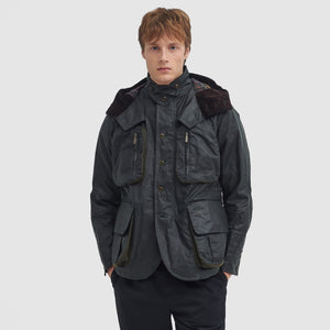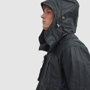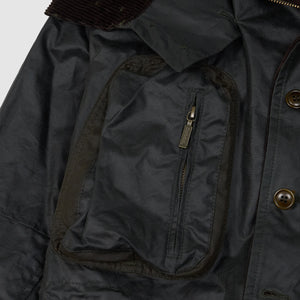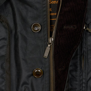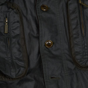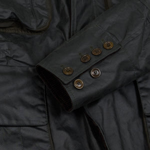 The Barbour x TO KI TO Outland Waxed Jacket is a unique creation inspired by traditional military jackets, designed with the idea that you won't need to carry a bag while wearing it. Every detail of this jacket has been thoughtfully crafted, featuring multiple pockets to meet all your storage needs. Ergonomically designed with venting zips at the back of the sleeves for temperature regulation and chest pockets with waterproof zip entrances for added practicality, this jacket is perfect for the discerning wearer. Complete with Corozo buttons that enhance with each wear, this waxed cotton style is truly made for jacket connoisseurs.