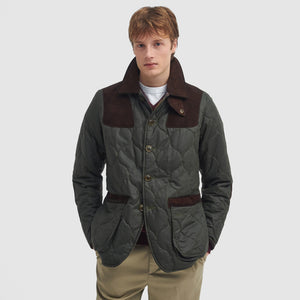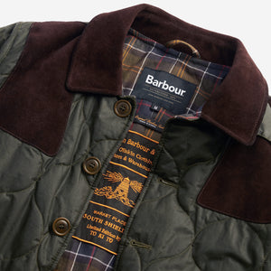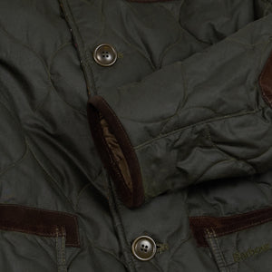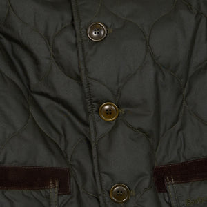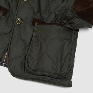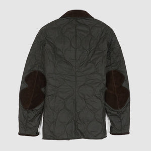 Inspired by Barbour's iconic Liddesdale quilted jacket, the Barbour x TO KI TO Sporting Quilted Waxed Jacket offers a modern interpretation of traditional box quilting. This jacket combines Barbour's signature waxed cotton with unique onion quilting for added style and functionality. Designed with outdoor pursuits and protection against the elements in mind, it features thermal wadding for enhanced heat retention and U-shaped lower pockets that provide ample storage without sagging or distorting the jacket's silhouette. Corozo buttons and suede trims, including a suede collar, provide an authentic finish.