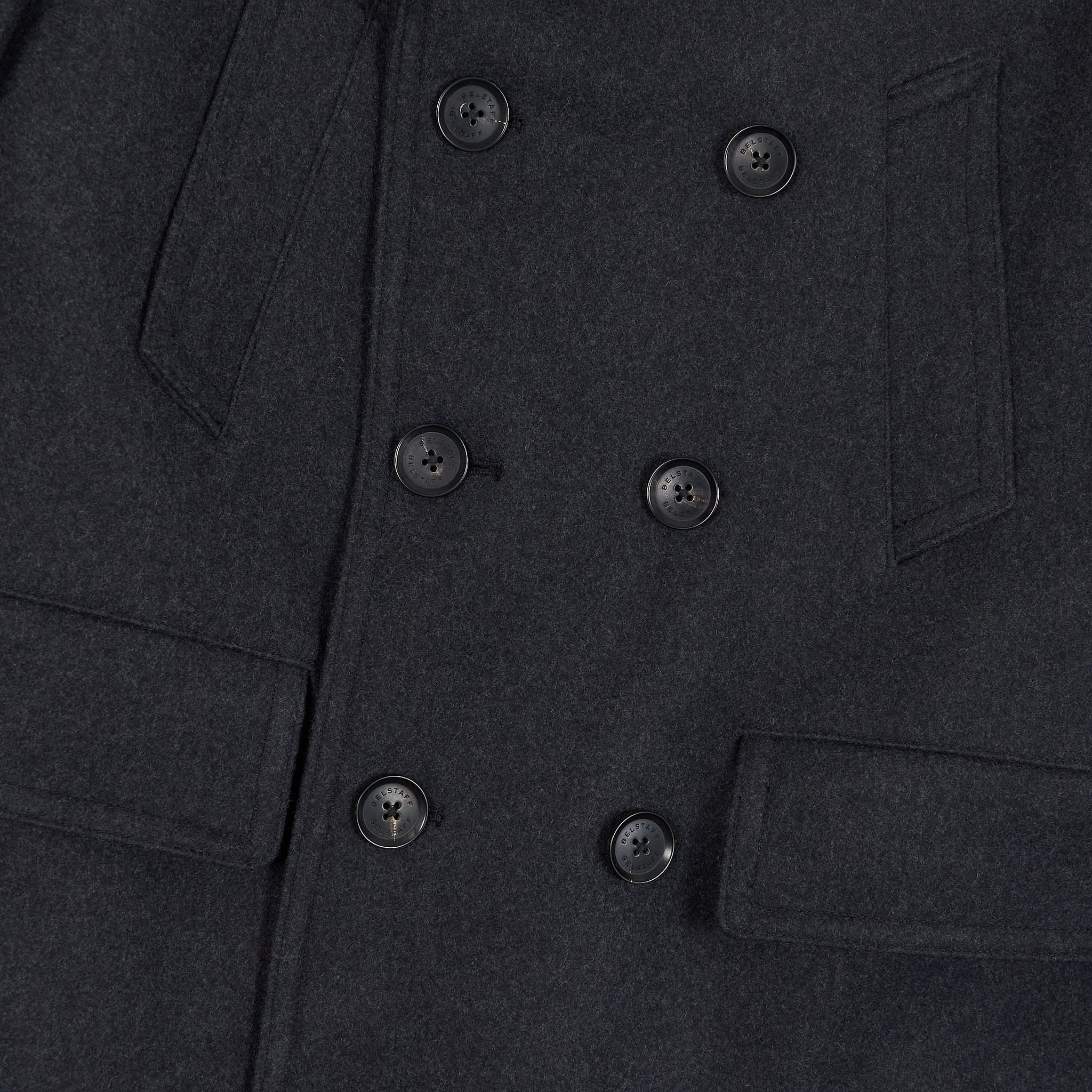 A military-inspired masterpiece blending Italian wool, cashmere, and polyamide for unparalleled warmth and refinement. The double-breasted design features oversized notched lapels, horn buttons with engraved branding, and a detachable throat latch—echoing officer-class heritage while delivering modern versatility. Equally suited over tailored suits or casual denim, it balances quiet authority with functional elegance.