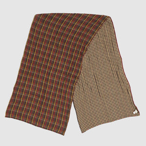 Crafted from double-faced cotton cloth, this versatile scarf features a yarn-dyed plaid pattern on one side and a complementary check on the reverse. Tinted and rinsed for a soft, lived-in hand, it offers effortless style and lightweight warmth for transitional seasons.