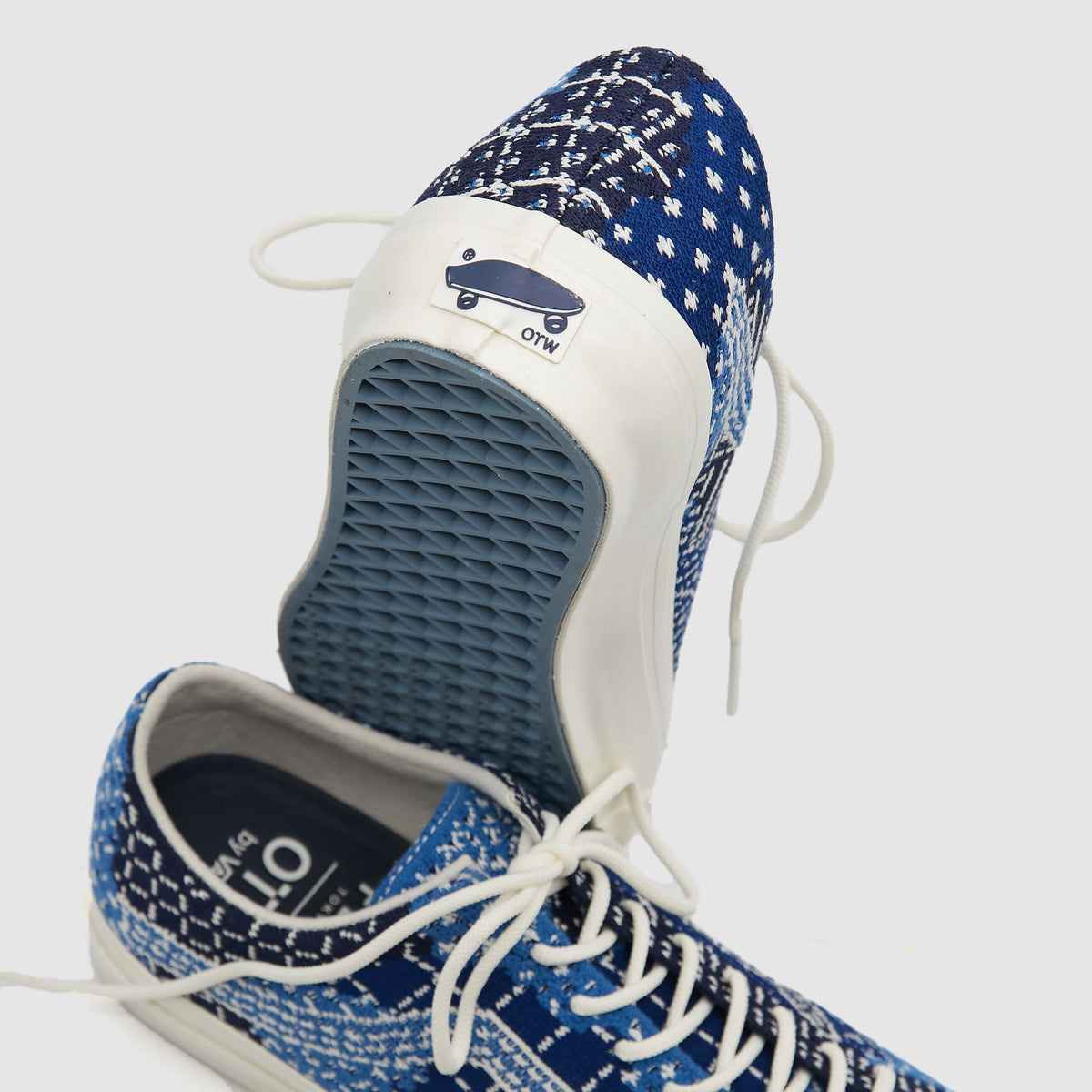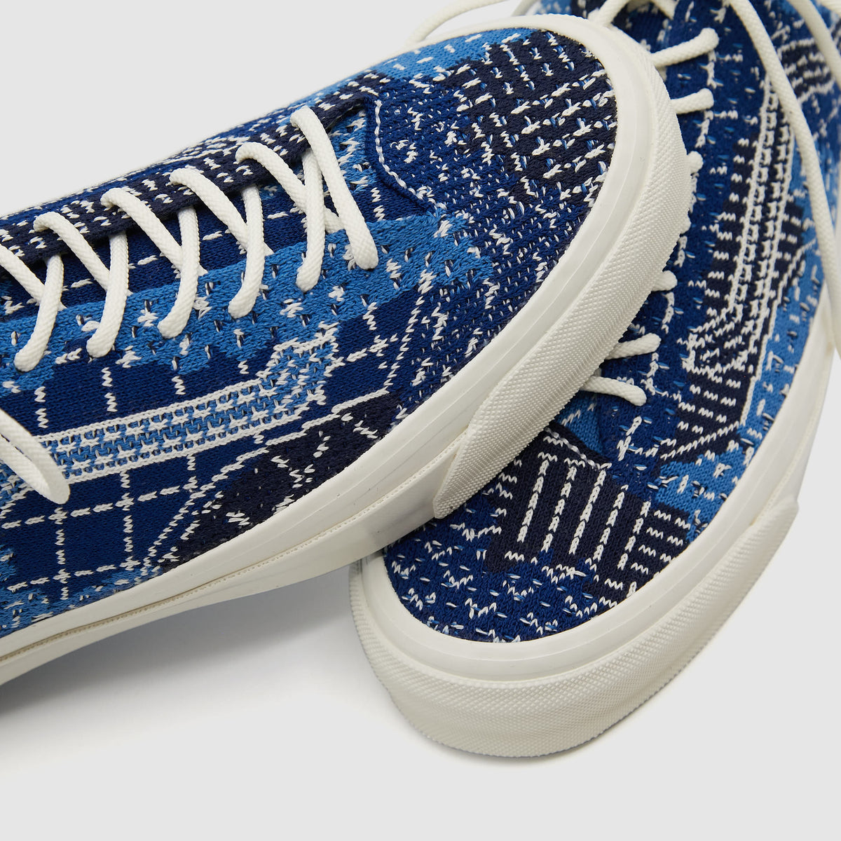 Japanese denim artisans FDMTL reimagine Vans classics through their signature sashiko lens, translating patchwork textile mastery into knitted form. The Old Skool 36 silhouette feature intricately stitched indigo/off-white uppers that mimic FDMTL’s famed boro repairs, while vulcanized soles and high foxing tape honor Vans’ skate DNA.