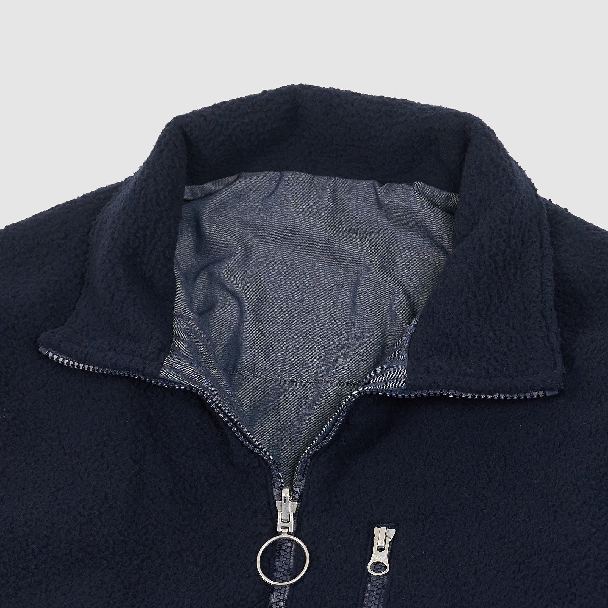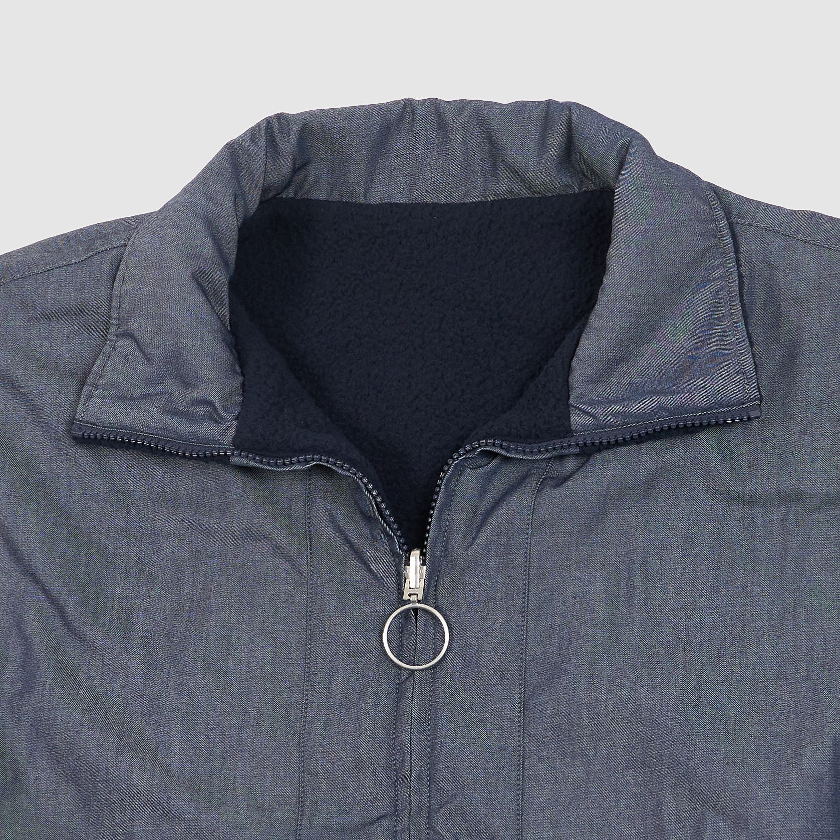 A versatile two-in-one design featuring recycled polyester boa fleece on the exterior with non-fluorinated water-repellent treatment, and recycled polyester twill with a denim-like finish on the reverse. The oversized silhouette includes an adjustable hem for customizable fit and comfort.