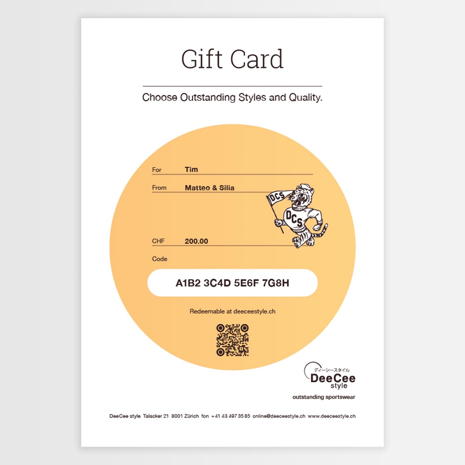 Are you looking for a gift but not sure what to give? Then a DeeCee style gift card can be the right present. Our physical vouchers come in a nice pouch and we'll send it by post. For a last minute present the digital gift card that you can print comfortably at home is the right choice.