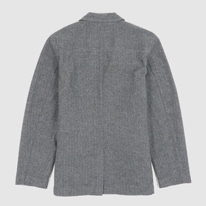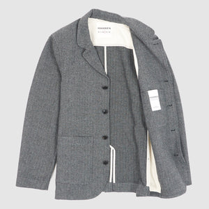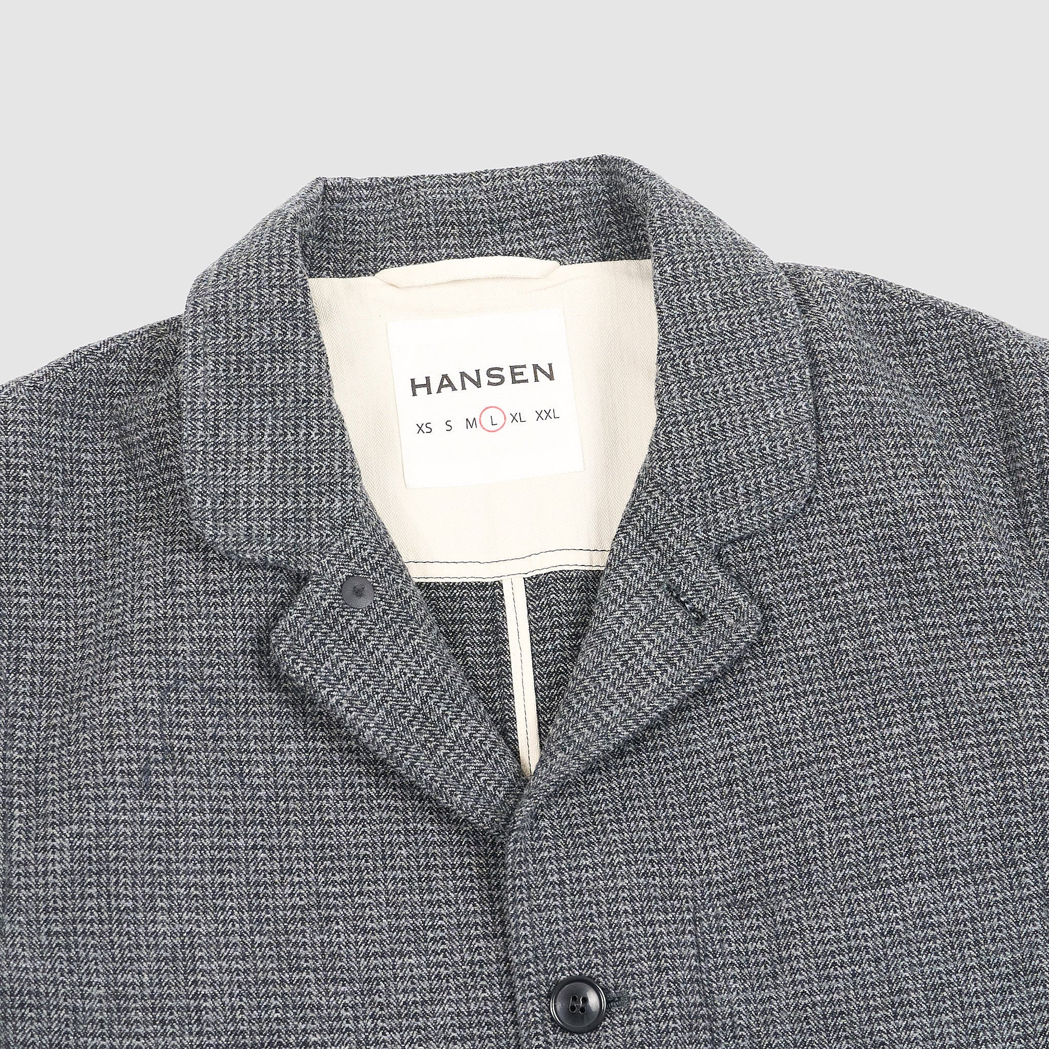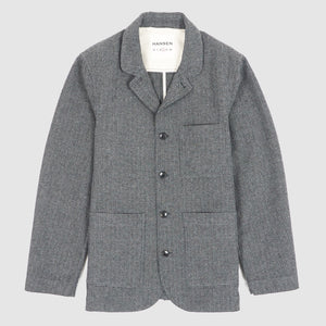 A versatile hybrid of tailored blazer and relaxed workwear, the Josef jacket is crafted from an Italian cotton-wool blend with 35% recycled fibers. Its soft, half-lined construction features a four-button front with an additional neck button, three rounded patch pockets, and natural horn buttons. Designed for comfort and casual elegance.