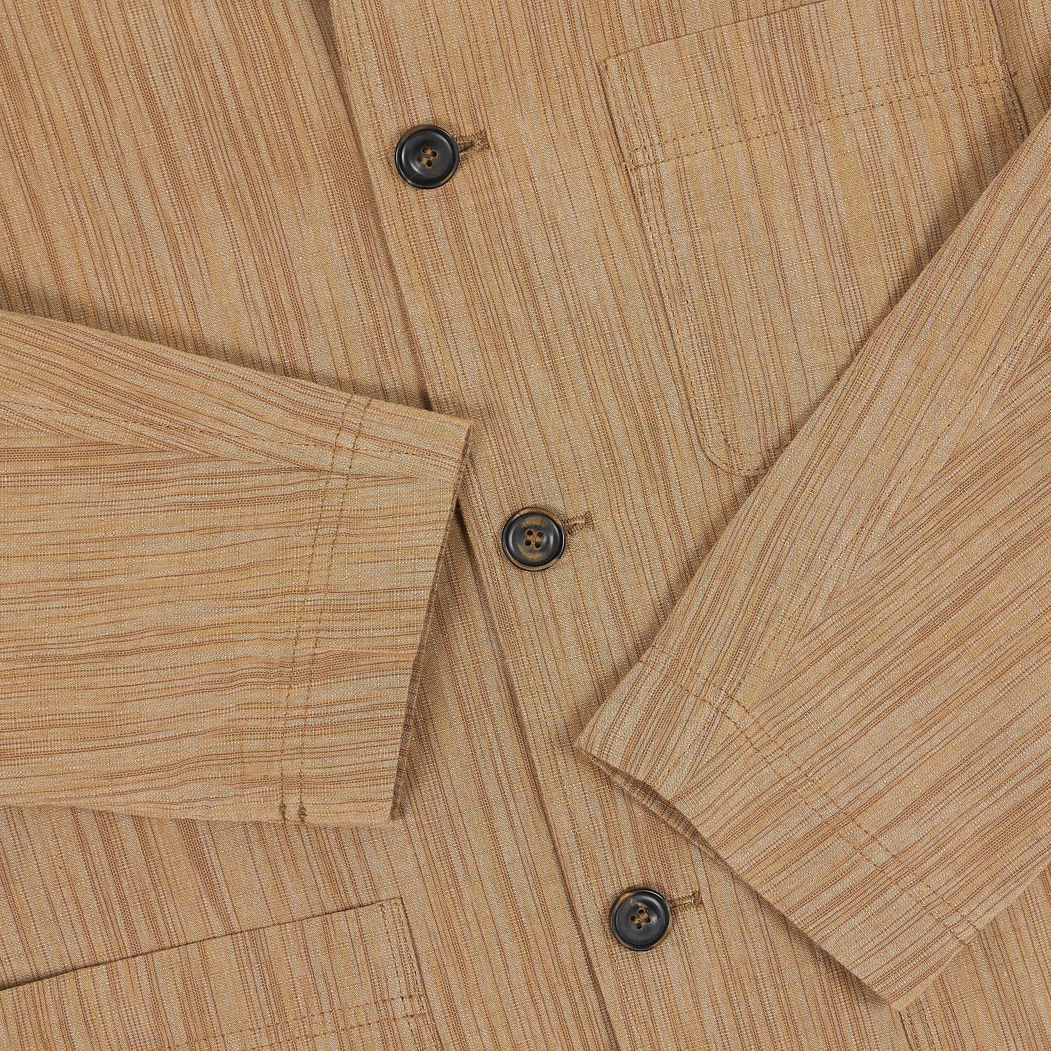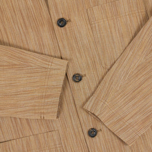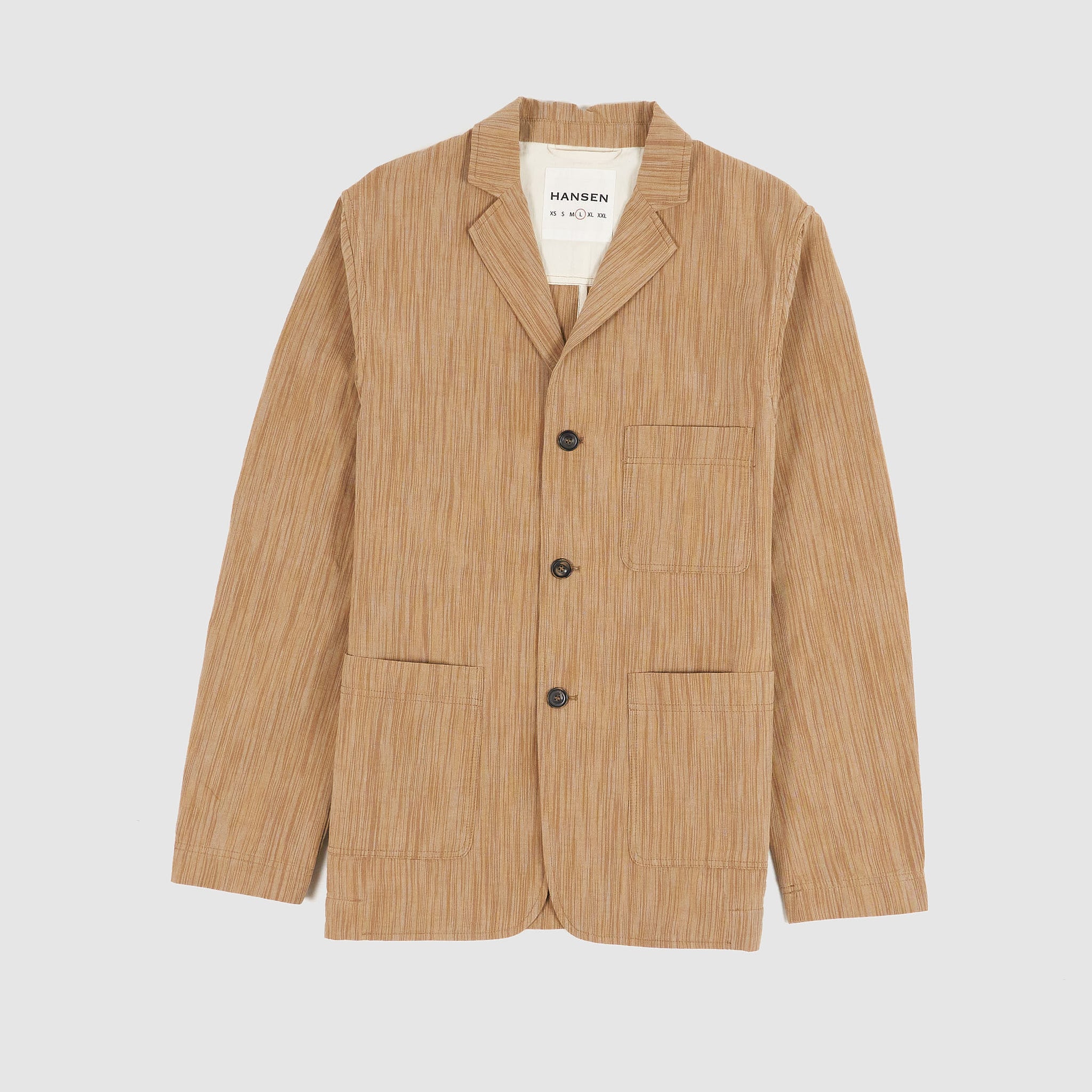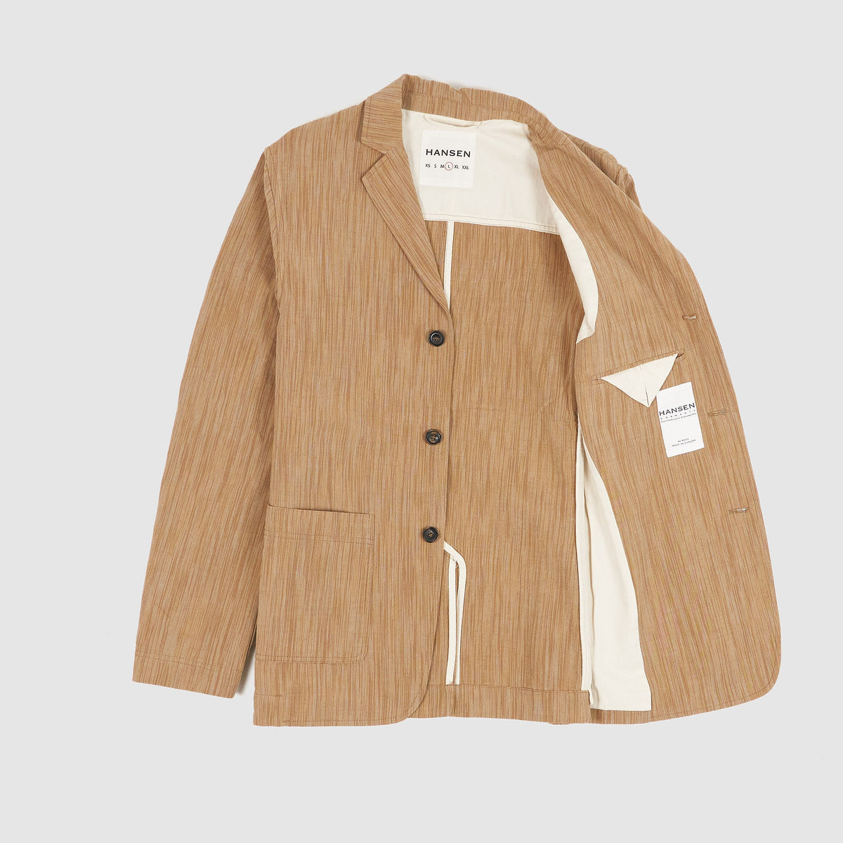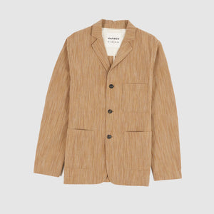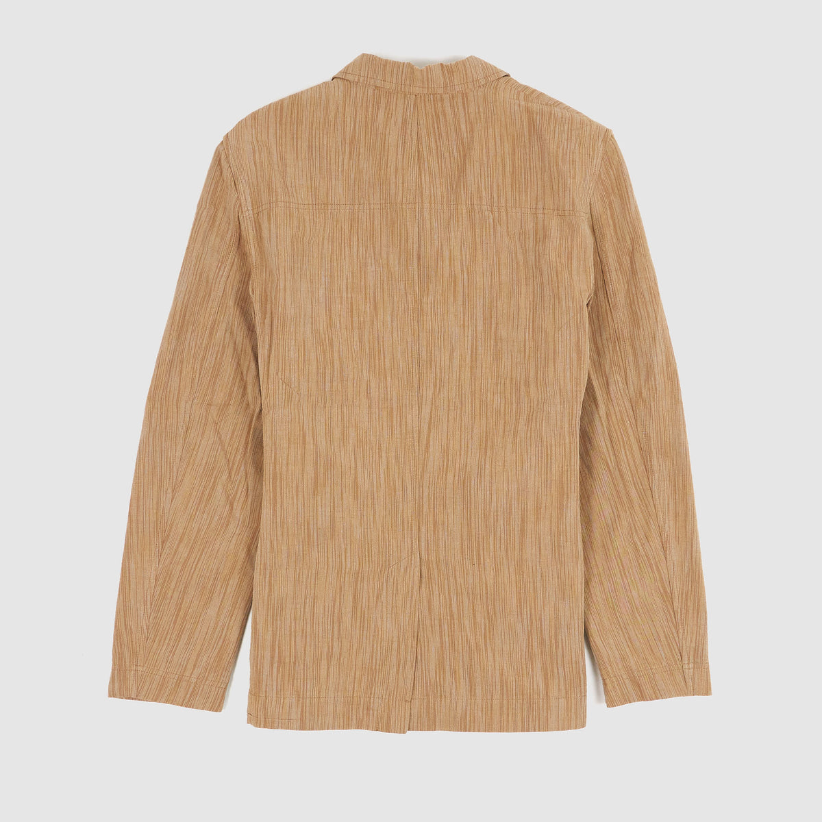 Redefining tailored ease, this blazer merges Italian textile innovation with a deliberately undone aesthetic. Crafted from a custom cotton mix, the fabric showcases irregular "flame" dye patterns woven directly into slub yarns for organic color variation. The half-lined construction and soft shoulders ensure comfort, while three patch pockets and horn buttons lean into its relaxed sensibility.