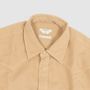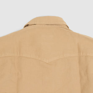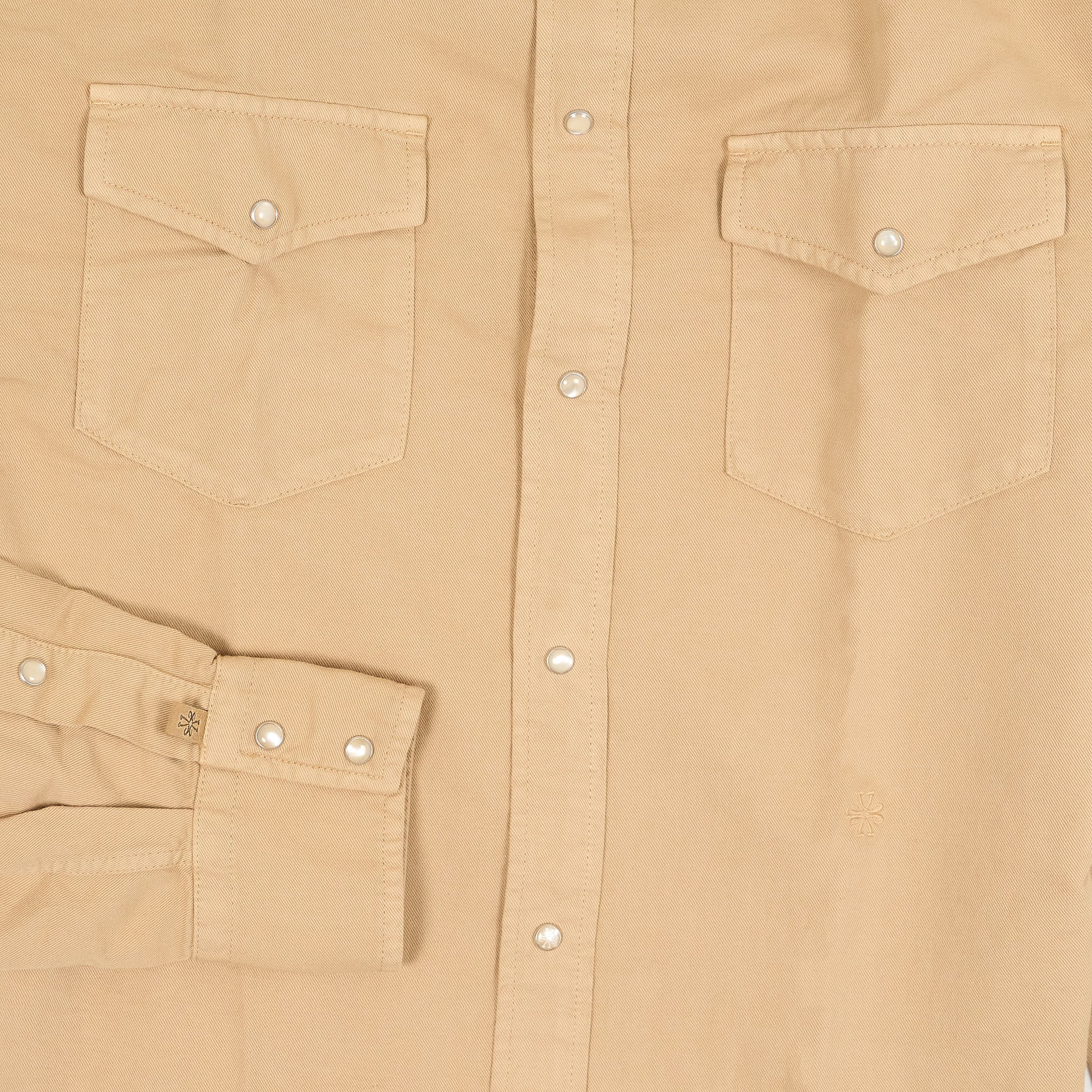 The spirit of the frontier meets Italian craftsmanship in this timeless Western shirt. Cut from pure, garment-dyed cotton in a soft almond hue, it develops richer character with every wear. Authentic details—from horn-style snaps to embroidered yokes—tell a story of adventure, whether you're pairing it with denim for a classic look or layering it under a blazer for modern contrast.