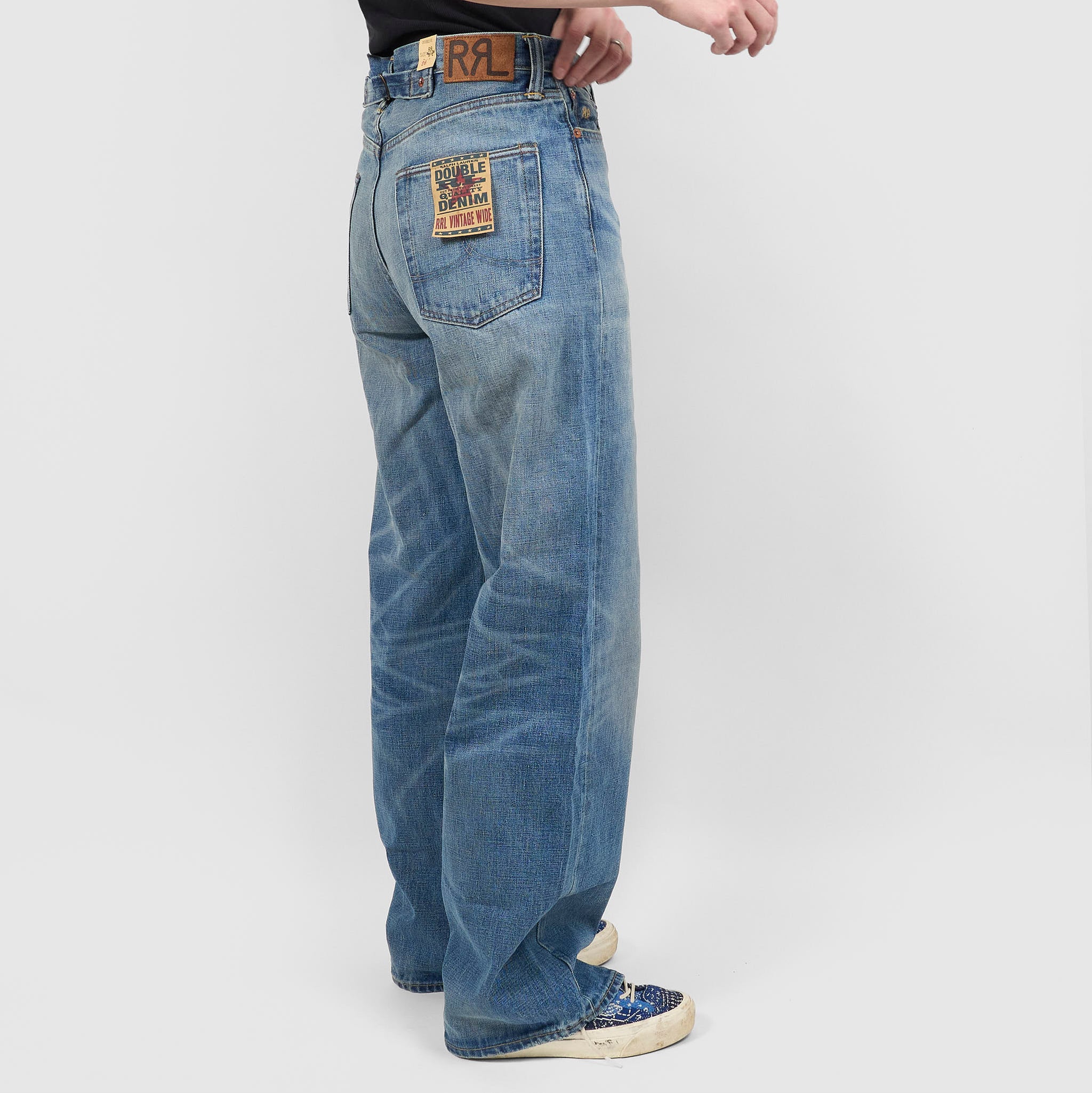 Inspired by late-1930s denim styles, these relaxed wide-leg jeans are crafted from 14 oz. Japanese left-hand twill and dyed with true indigo for deep, vintage-inspired color. Lightly washed and specially dried to achieve an authentic timeworn appearance, they feature adjustable buckled detailing at the back, a button fly, and signature RRL hardware. Designed to evolve with wear, they develop a personal patina over time.