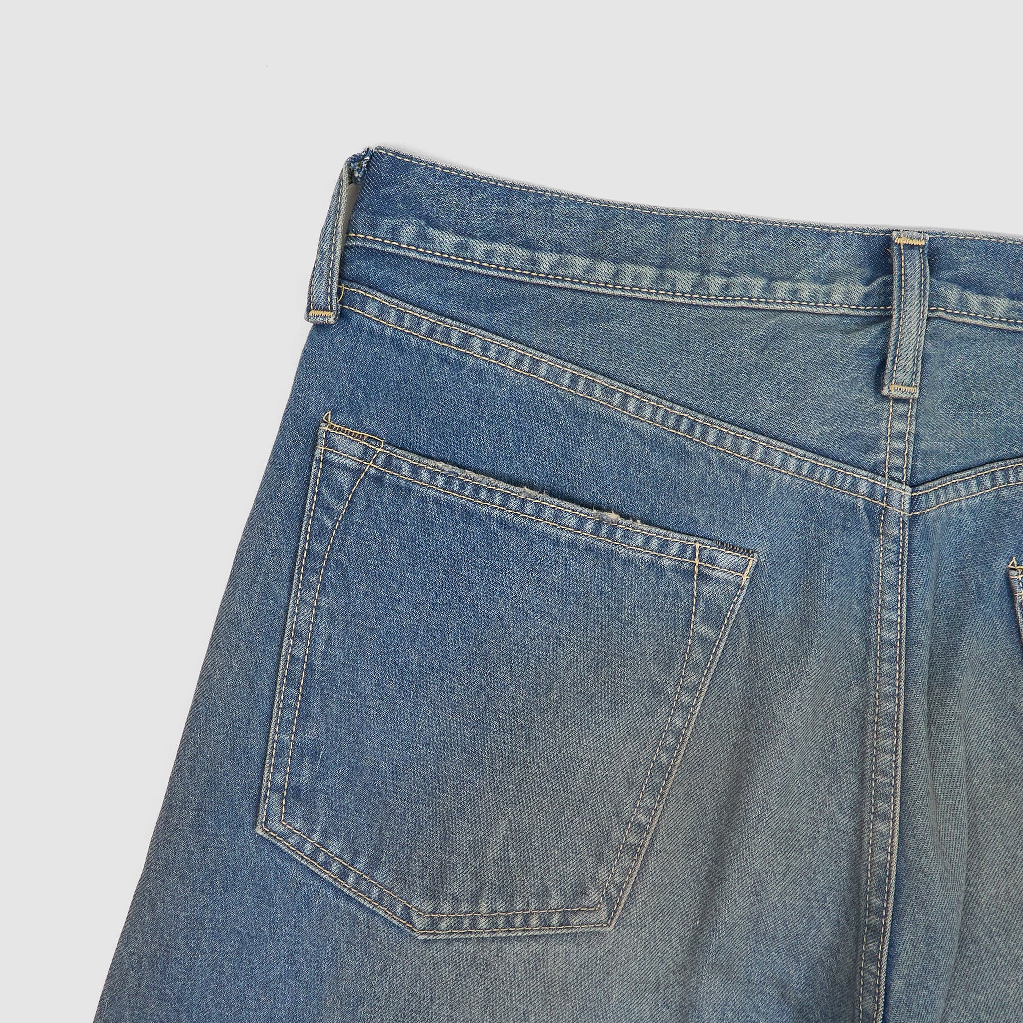 Step into the unique world of KAPITAL with these one-of-a-kind "working class hero" blue pants, showcasing a reworked patchwork design for a distinct look. Crafted from 14oz denim, they feature distressing and patchwork details throughout, adding character and depth. These pants are equipped with practical belt loops, a back logo, and a 'Kountry' patch and eye printing on the thigh adding to their unique appeal. The button and concealed button fly offer a secure fit, while inset pockets, a coin pocket, and back patch pockets provide ample storage. Designed with a tapered leg, these pants merge comfort with a sleek, contemporary style.