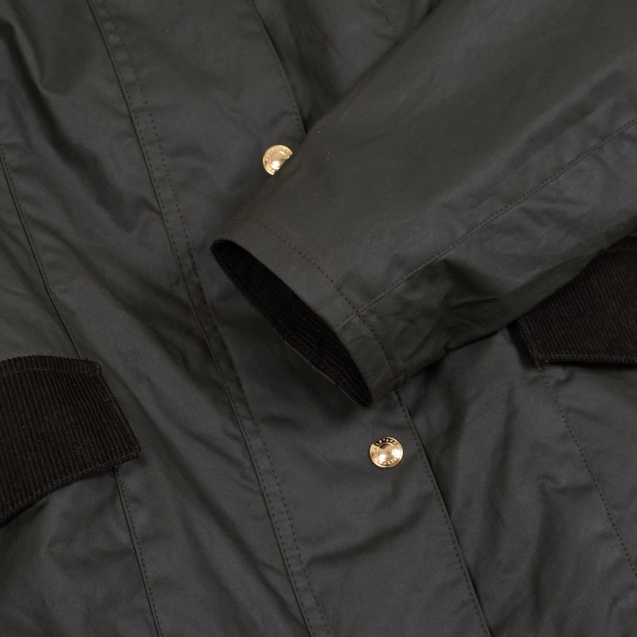 Inspired by a 1970s archive piece of the same name, the Burghley jacket reinterprets classic country style for the modern woman. Crafted from durable waxed cotton, it creates a reliable barrier against wind and moisture, keeping you dry and warm in unpredictable weather. With proper care, this low-maintenance jacket will age gracefully, developing a unique patina over many years of wear.