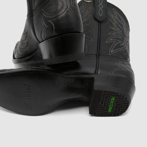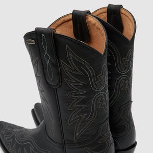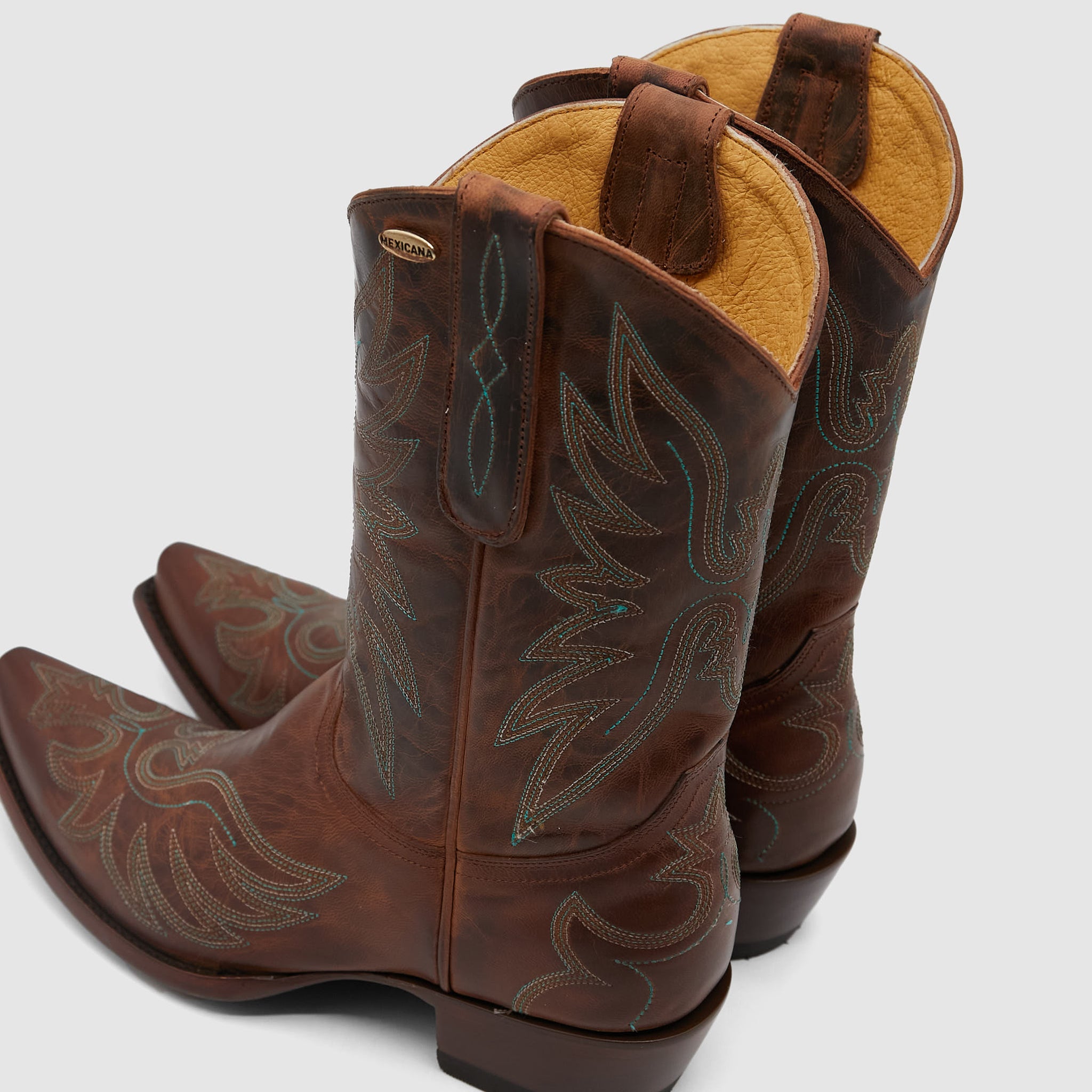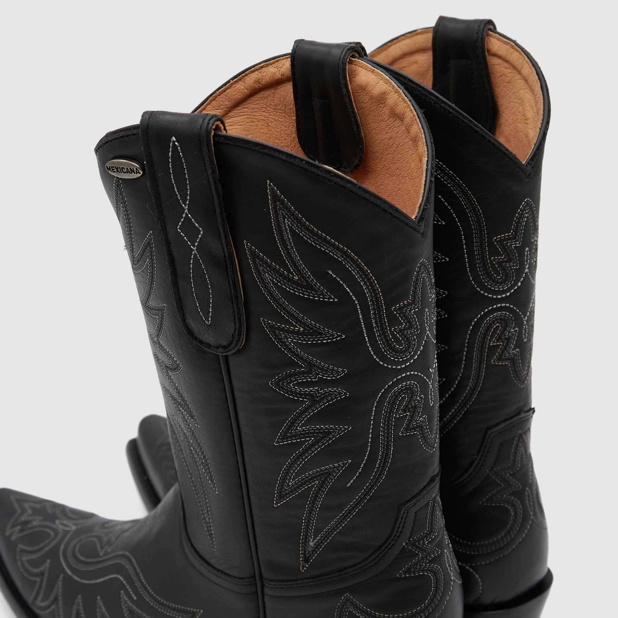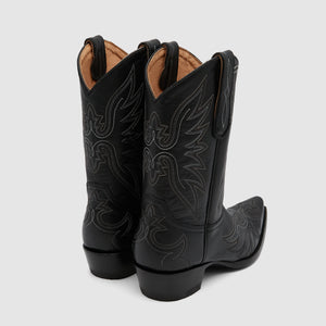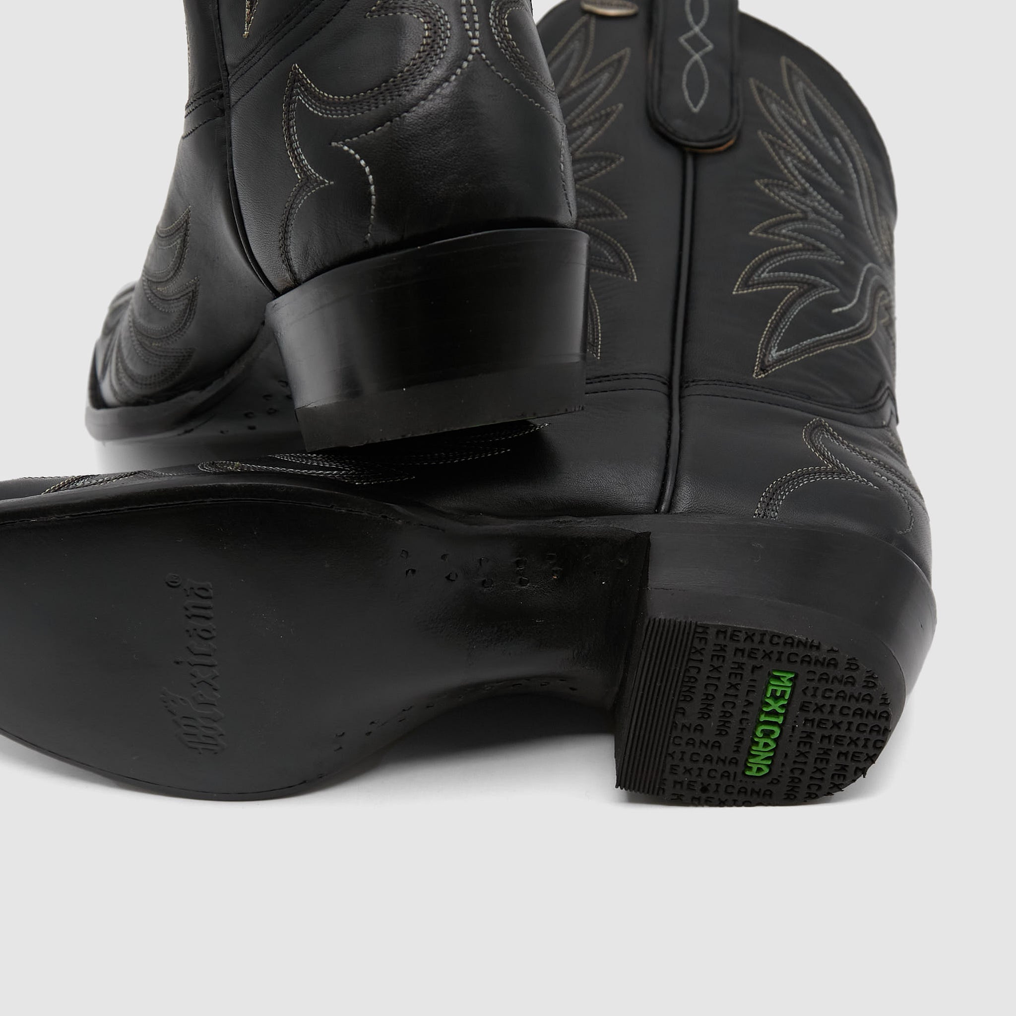 A tribute to traditional "vaquero" craftsmanship, these sleek pointed-toe boots feature intricate eagle-inspired stitching and a signature side tab, handcrafted in Mexico from premium cowhide leather. The 1.8-inch leather heel delivers authentic lift and posture, while the leather sole ensures durability and a customizable fit as it molds to your stride.
