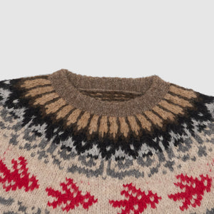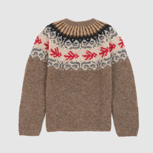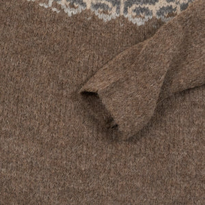 Crafted from a premium blend of alpaca wool and polyamide, this sweater features an all-over Fair Isle pattern in a rich nut-brown colorway. Designed with a ribbed crew neck, cuffs, and hem, it offers lightweight warmth with intricate, traditional craftsmanship.