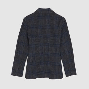 A tailored blazer featuring a classic checkered pattern, two-button closure, and practical patch pockets for a blend of sophistication and casual charm. Designed for versatility, it effortlessly transitions from professional settings to relaxed outings.