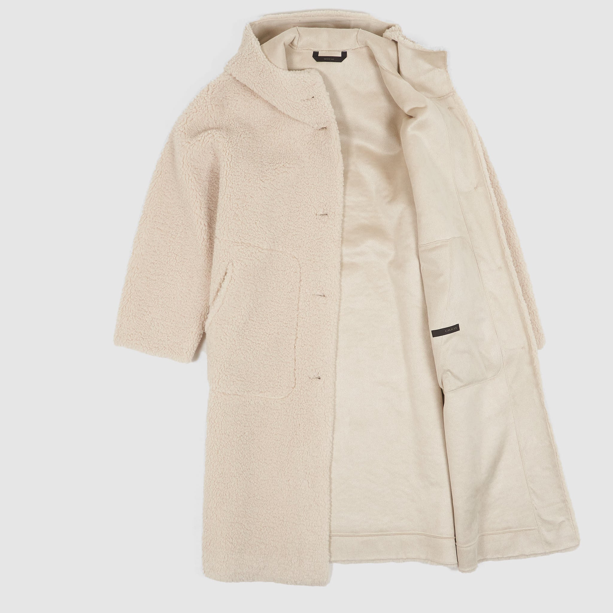 Faux Shearling crafted from 100% polyester with a sophisticated soft feel, this single-breasted hooded coat offers the refined appearance of traditional wool with the practical benefits of modern synthetic fabrication. Ideal for transitional weather, it combines a clean silhouette with functional design, including a protective hood and versatile styling options.