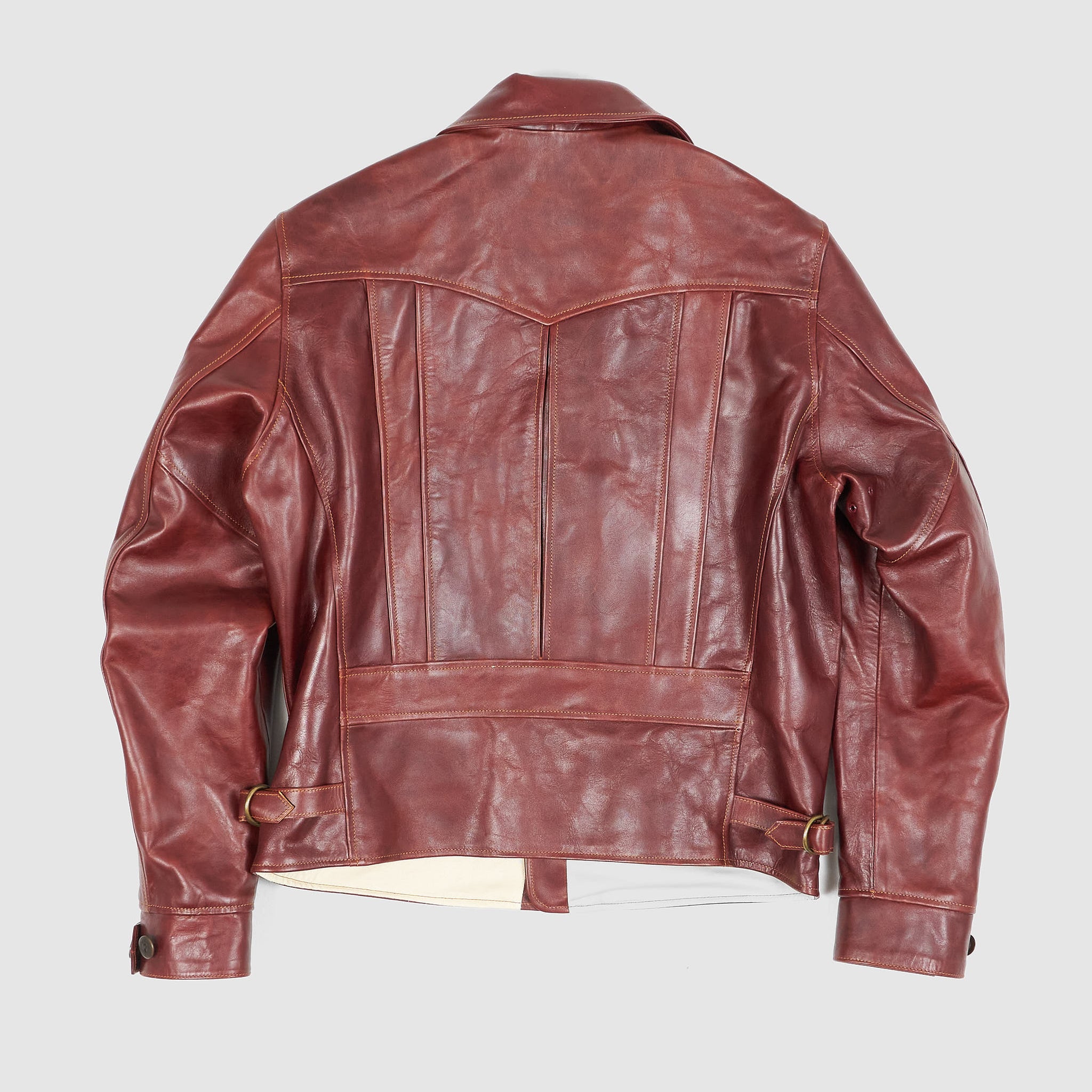 Crafted with true and honest workmanship, this vintage-inspired leather jacket is made from vegetable-tanned, oiled horse hide that develops a rich patina over time. Featuring a classic D-pocket silhouette with an elaborately constructed back, it combines rugged durability with timeless style. The authentic plaid wool lining and side buckles add refined detail, while the side zip closure ensures a secure fit. Designed to age beautifully, this is a jacket that only gets better with wear.