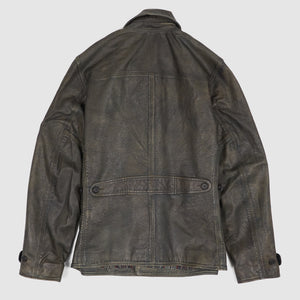 Crafted from richly textured, vegetable-tanned cowhide and indigo-dyed through a specialized process, this shirt jacket merges rugged durability with artisanal elegance. The brushed chamois pocket bags, corozo buttons, and adjustable details reflect a commitment to functional refinement, while the fully lined interior—featuring yarn-dyed plaid twill and viscose sleeves—ensures comfort and versatility.