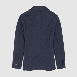 Reimagining tailored elegance through innovative construction, this blazer is knitted—not woven—from a featherlight cotton-wool blend for exceptional comfort and flexibility. Lined with smooth viscose acetate, it offers the polished silhouette of a classic blazer with the ease of a lightweight knit, making it ideal for all-day wear in transitional seasons.