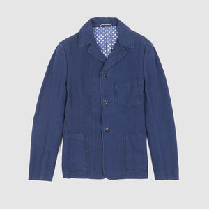 Inspired by classic French workwear, this veston is meticulously crafted in Japan from traditional indigo-dyed fabric and finished with a detailed patchwork lining. The timeless cut balances functionality and style, while the artisanal construction honors heritage techniques.