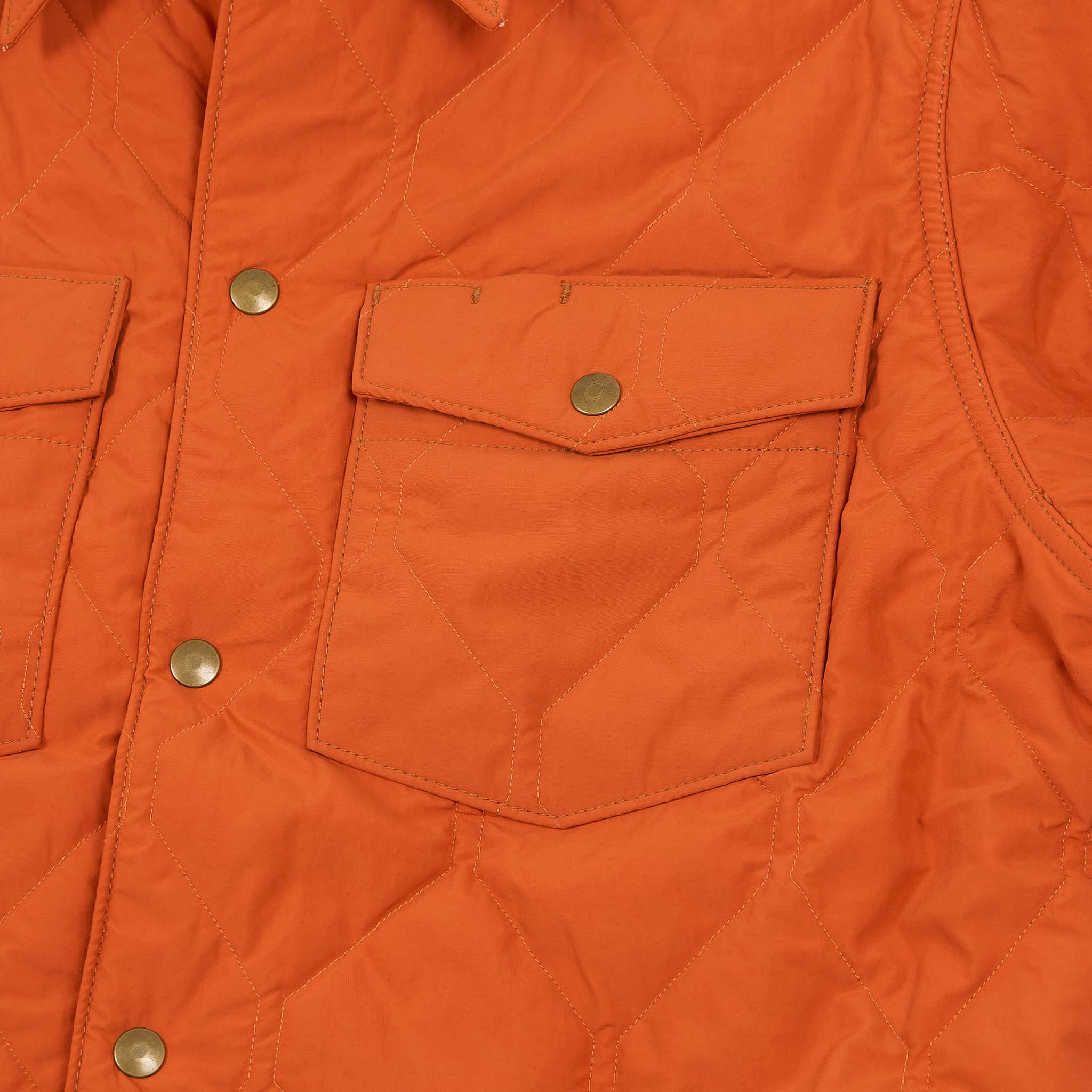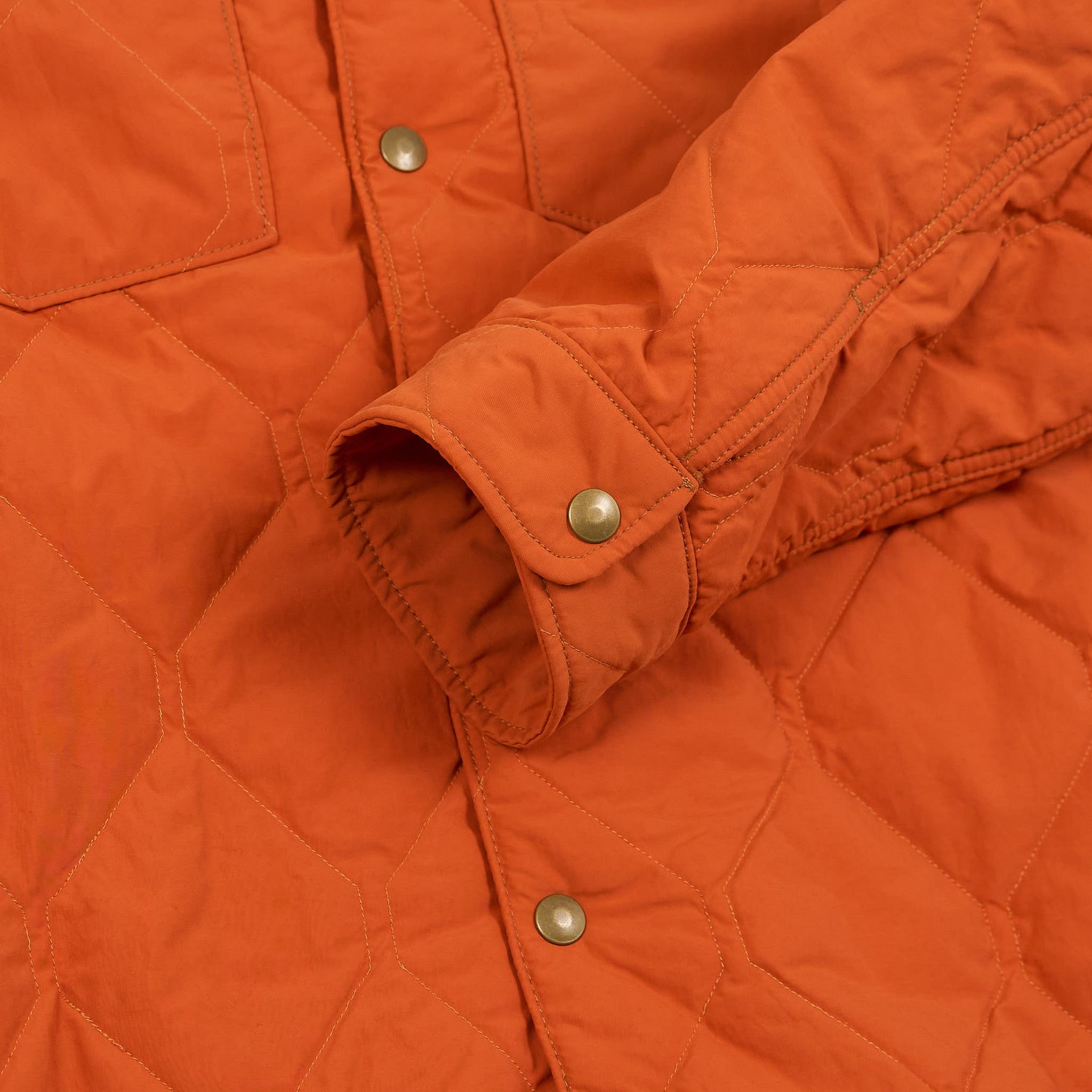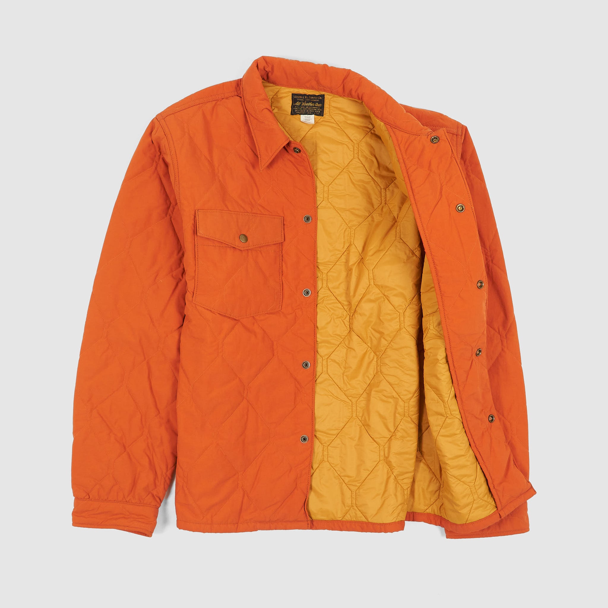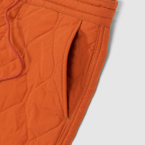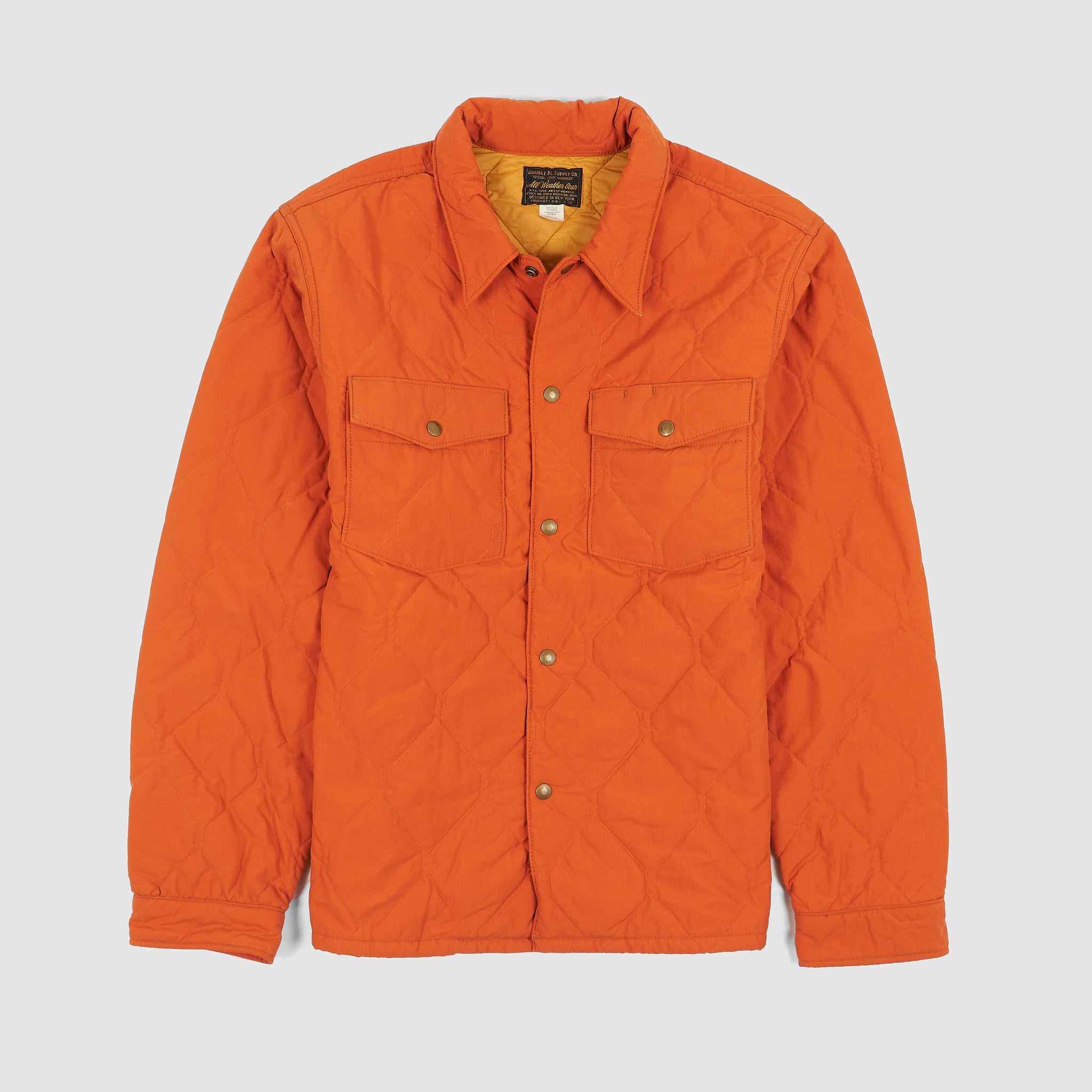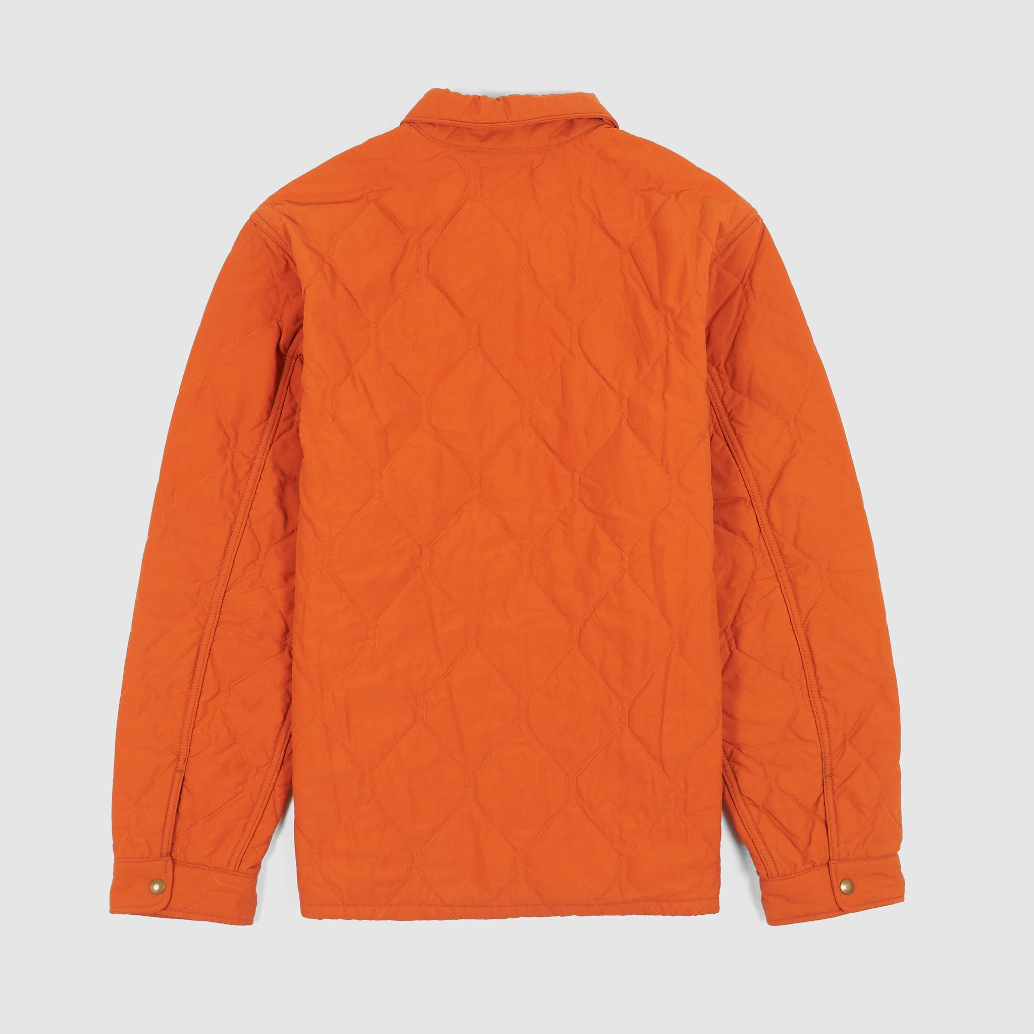 A limited-edition utility ensemble featuring an overshirt and trousers with a distinctive geometric onion-quilted pattern. Fully lined and insulated with a lightweight down-alternative fill, both pieces are lightly washed for a broken-in feel. The overshirt includes a snap-front placket and chest pockets, while the trousers offer an elastic drawstring waist, angled front pockets, and buttoned back pockets. Limited to 199 numbered sets.