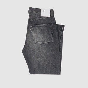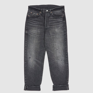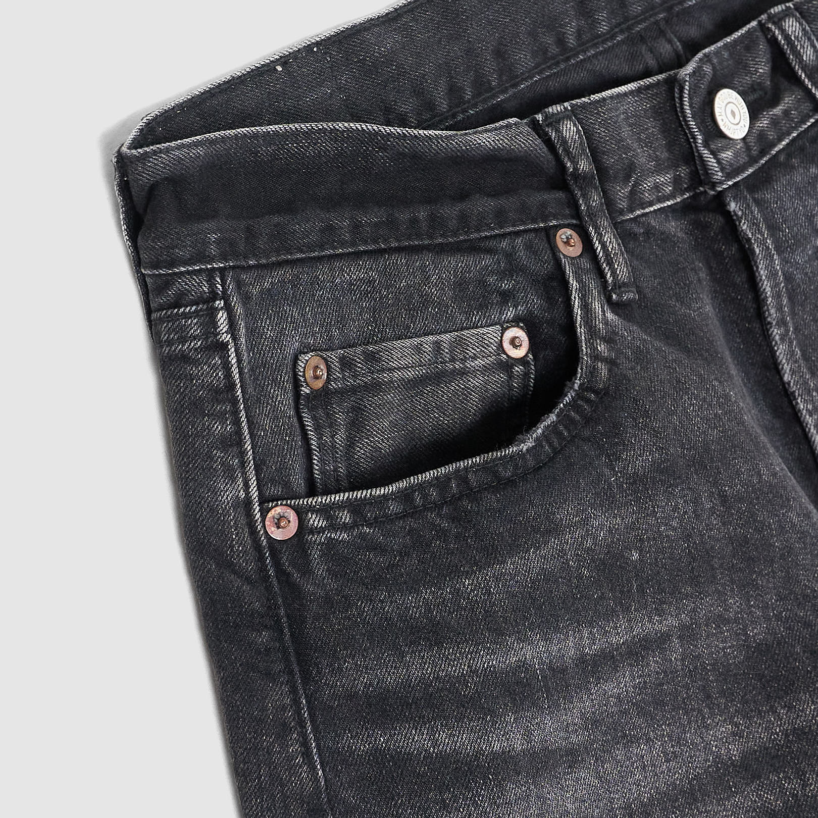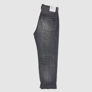 These single black denim jeans are crafted from pure cotton with a distressed finish, adding a vintage, worn-in feel. Designed with ribbed details and subtle fade creases for a naturally aged look, these jeans bring style and comfort together seamlessly.