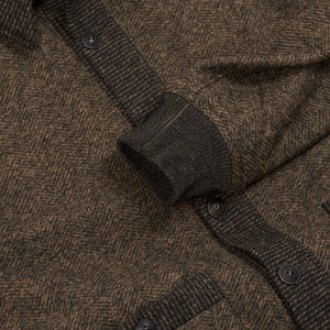 Crafted from a custom yarn-dyed double-layer jacquard with a heathered tweed-like appearance, this cardigan blends texture, warmth, and refined detailing. The peacock-eye jacquard accents on the button placket and pockets, paired with natural Corozo buttons and ribbed trims, create a piece that is both rugged and sophisticated.