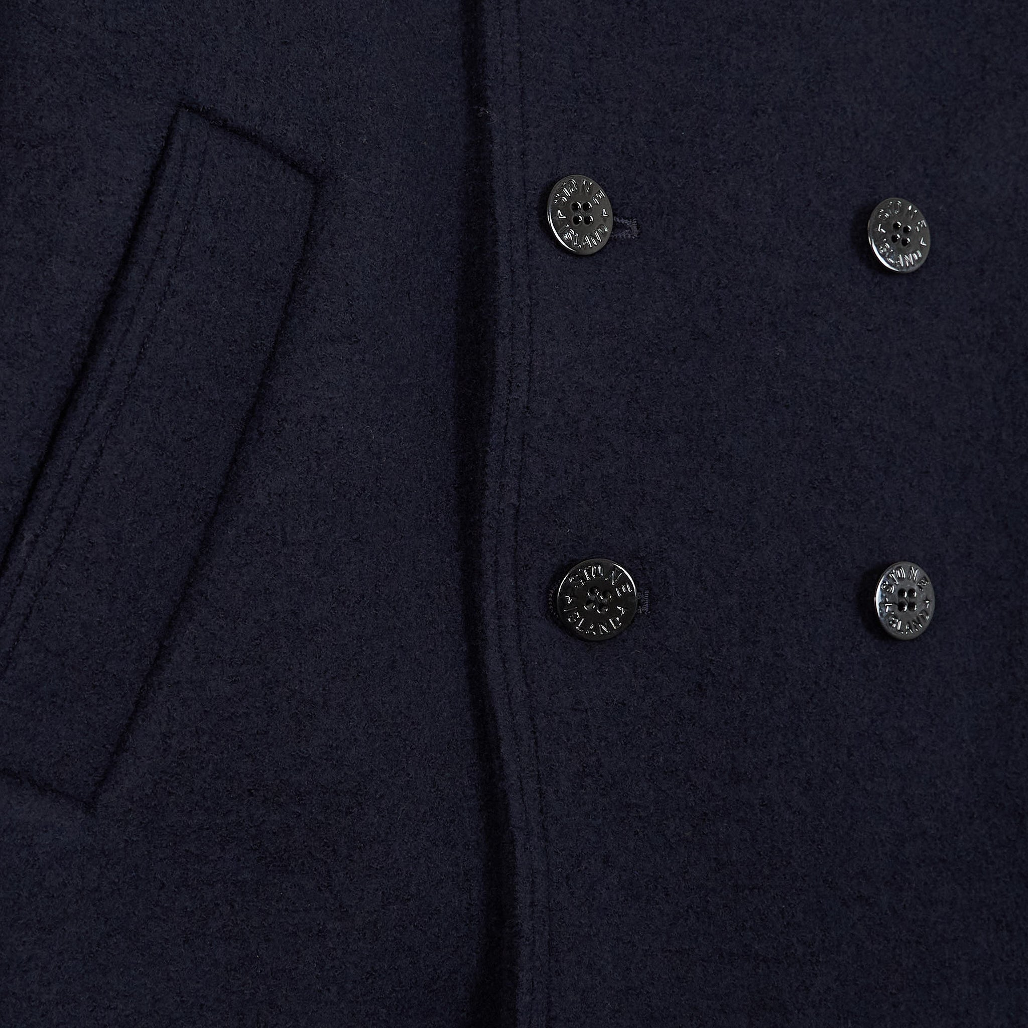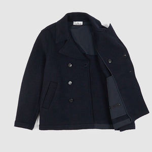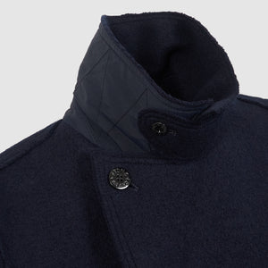 This exclusive garment is engineered for cold weather. The heavyweight peacoat is crafted from 100% felt-knitted wool, offering unparalleled insulation and wind resistance. The double-breasted design features reinforced pockets and a structured silhouette, blending maritime heritage with Stone Island’s technical innovation.