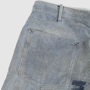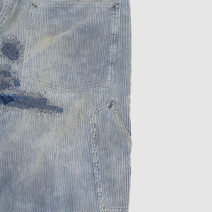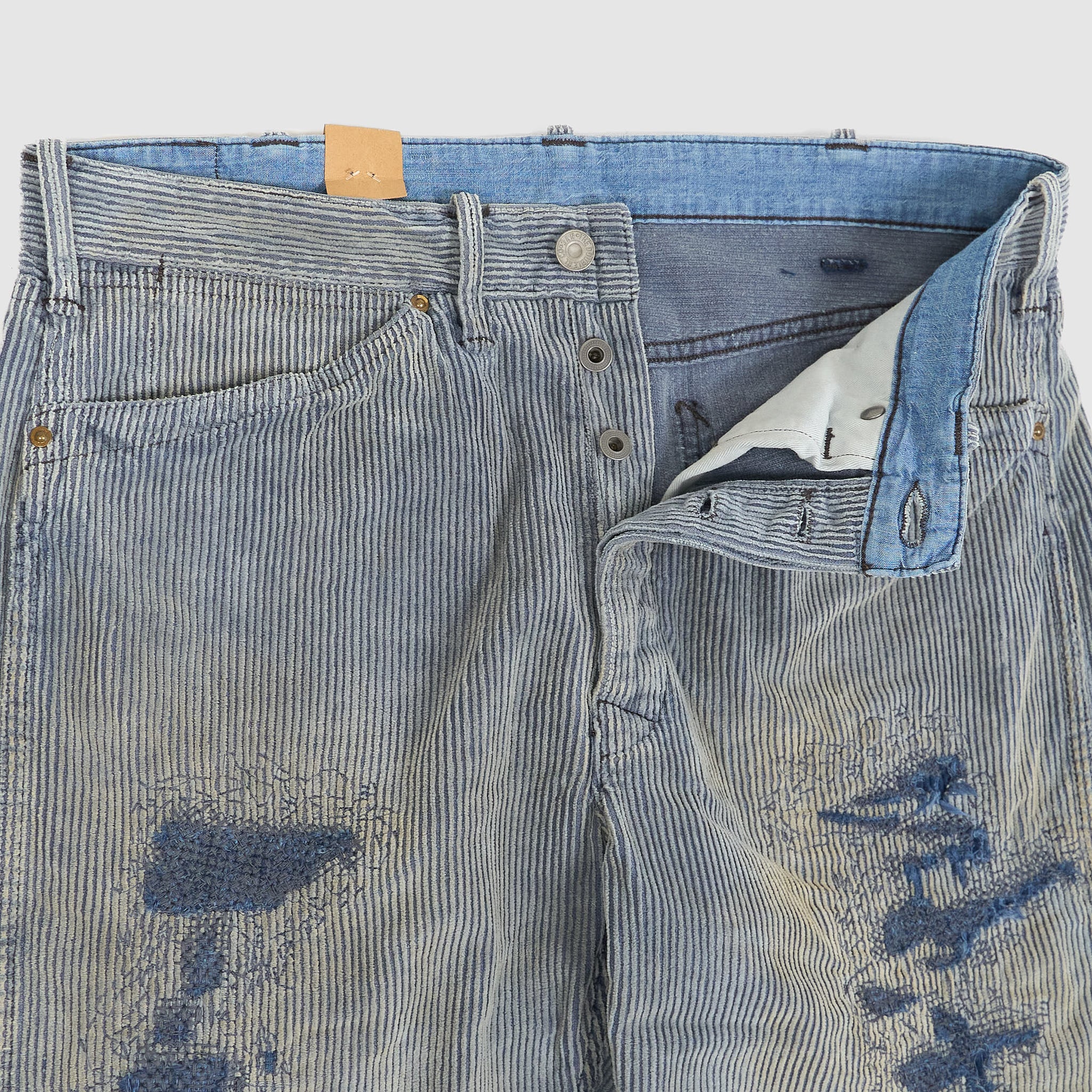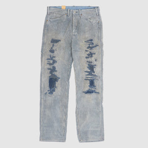 Crafted from premium wide-wale corduroy sourced from a historic French mill specializing in corduroy since the 1800s, these jeans are built for longevity and character. The five-pocket design is detailed with Japanese chambray piecing throughout, offering subtle repair-inspired accents. Featuring a hand-set chain-stitched waistband, inserted belt loops, and a button fly with signature buttoned closure for a consistent fit, each pair is designed to develop a unique, worn-in personality over years of wear.