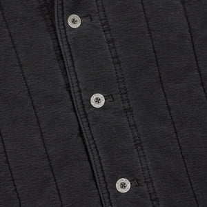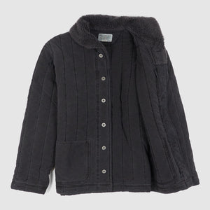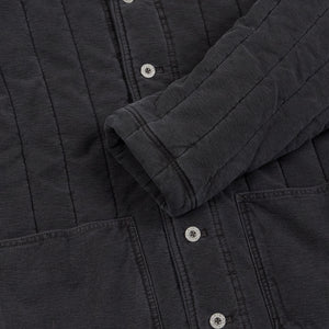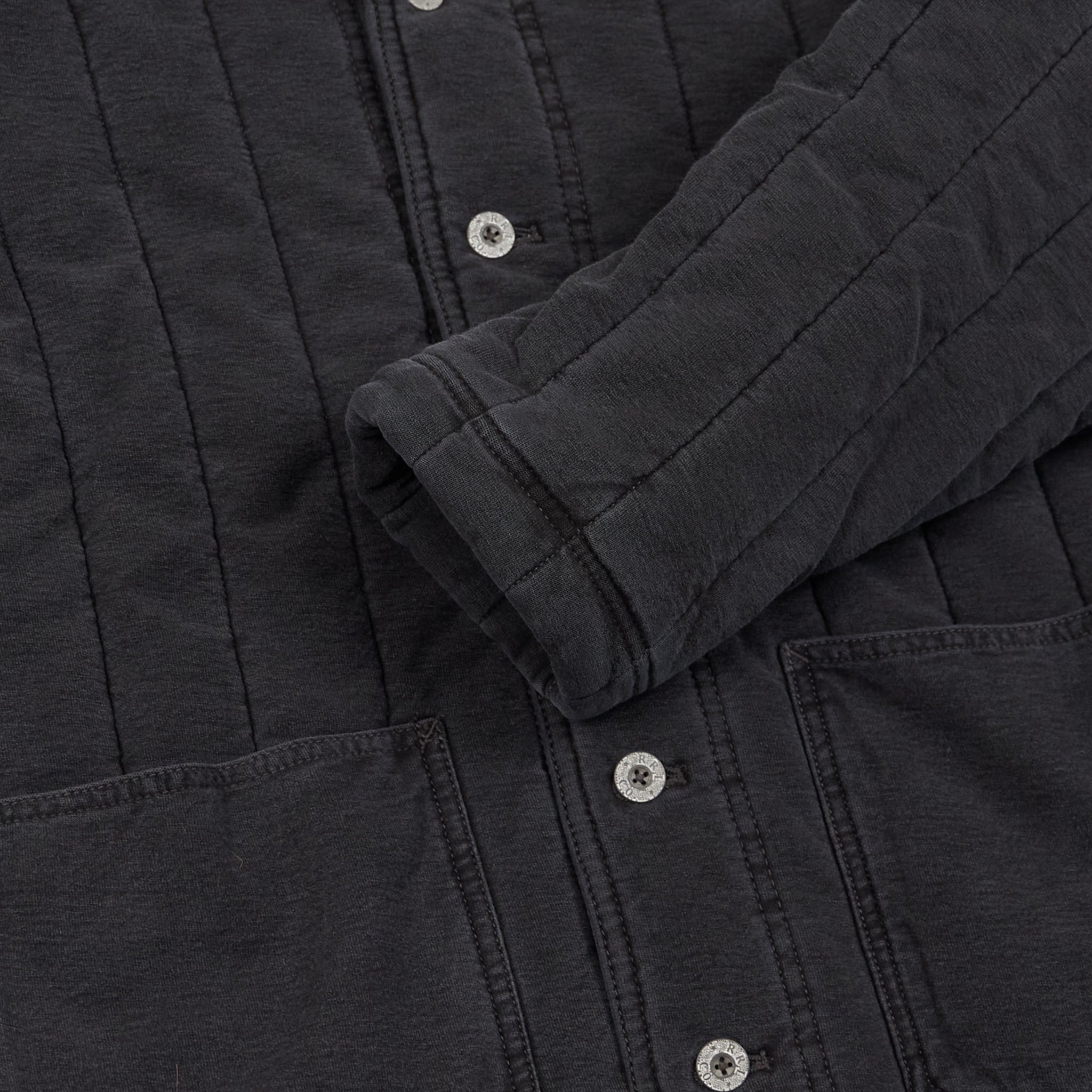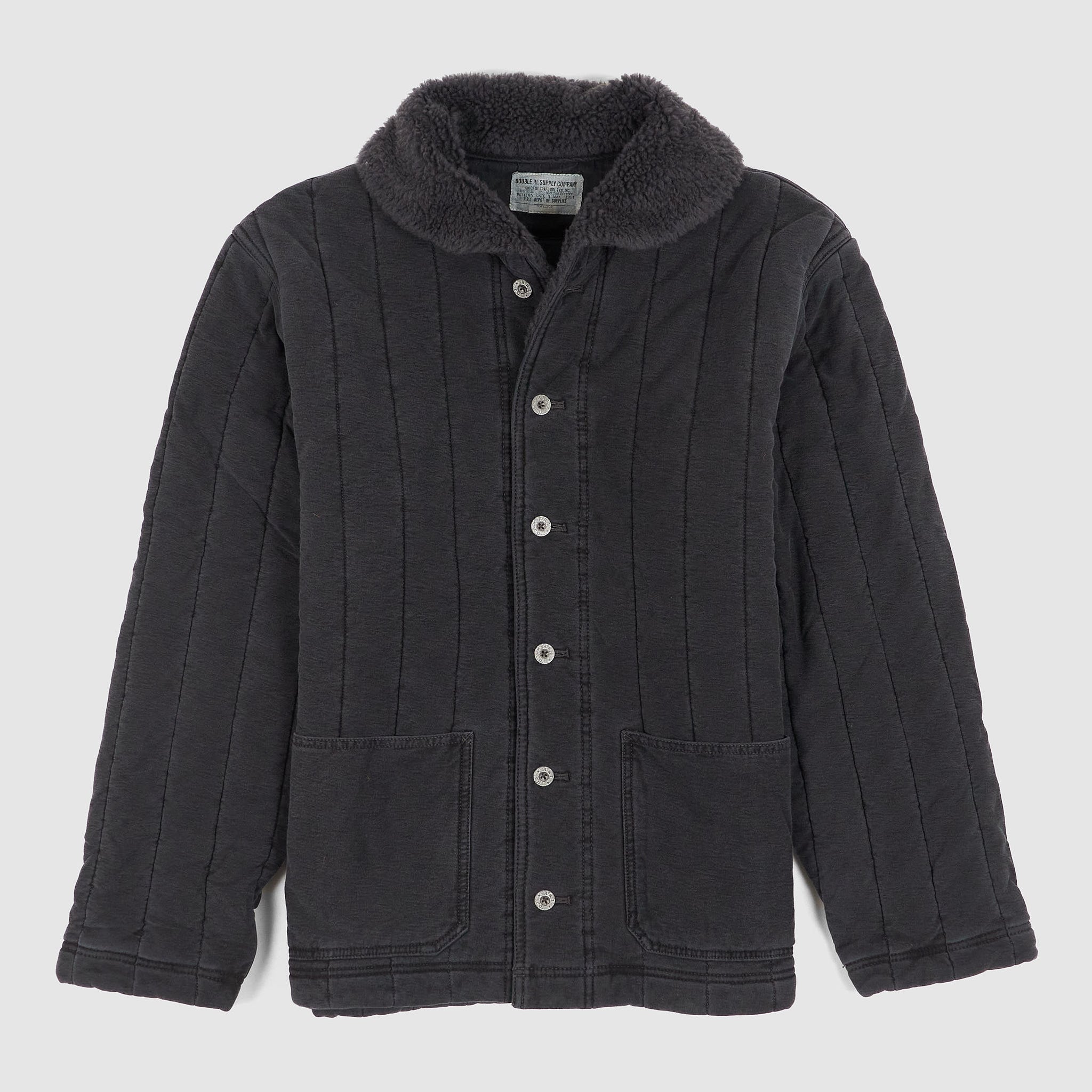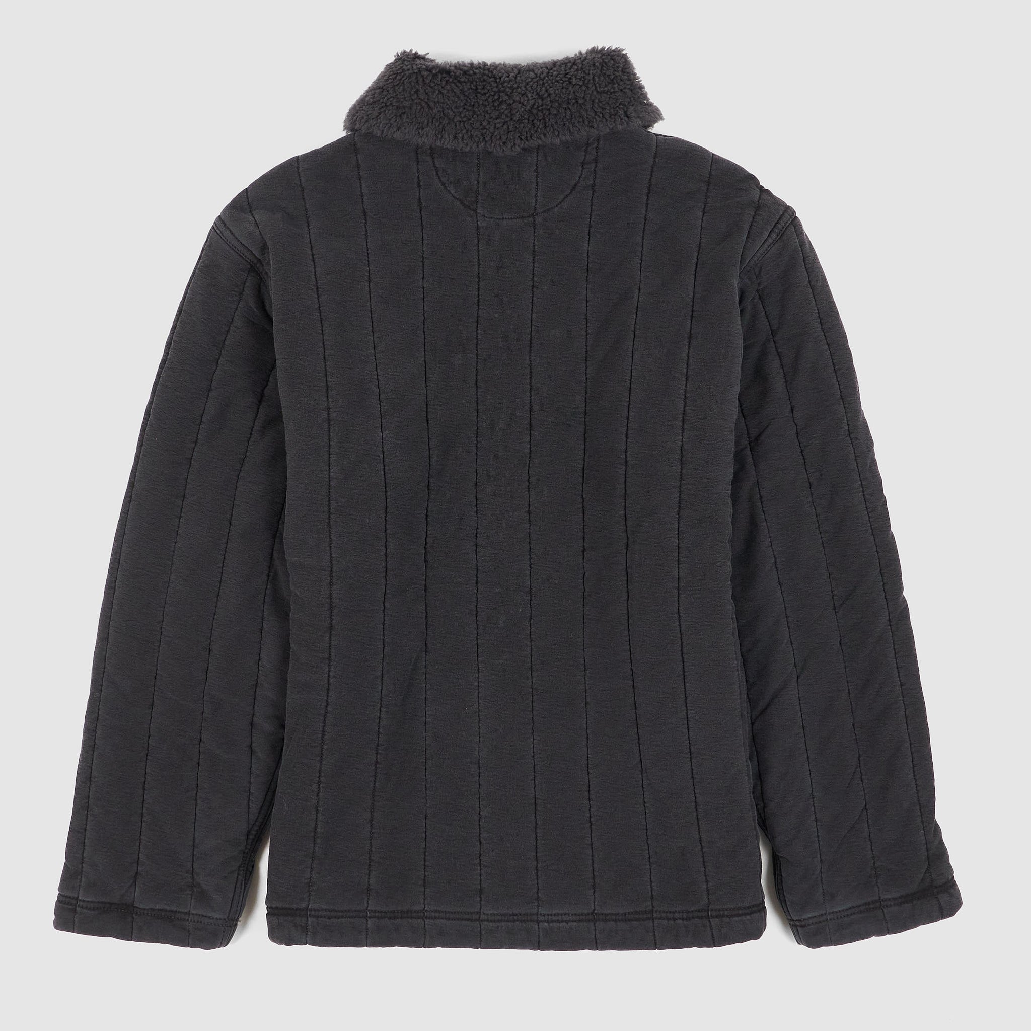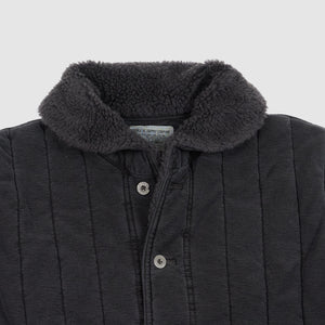 A rugged yet refined take on military-style outerwear, this jacket is crafted from heavy-duty cotton jersey and heavily pre-washed for a multi-dimensional, faded look. It features a high-pile wool-blend shawl collar, genuine indigo-dyed Oxford reinforcement at the placket, and a fully lined, polyester-filled construction for lightweight warmth. The double-quilted design, metal buttons, and patch waist pockets reinforce its durable, vintage-inspired character.