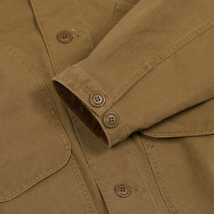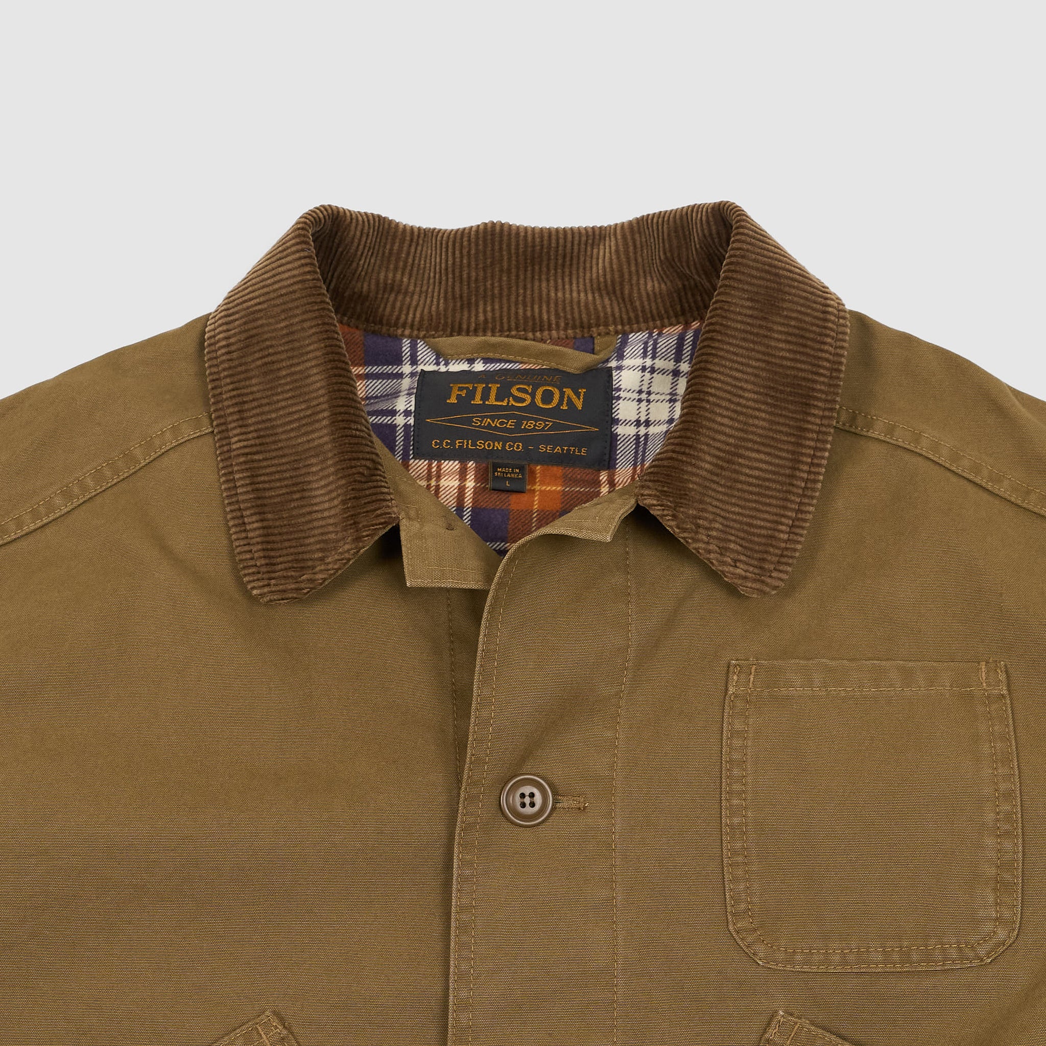 Built for rugged outdoor pursuits, this classic barn-style jacket is crafted from dense 10.5 oz cotton canvas to resist wind, brush, and debris. Featuring chip-resistant buttons, adjustable cuffs, and versatile cargo pockets with dual-access flaps, it combines practical design with enduring durability. The corduroy-trimmed collar and soft flannel lining offer comfort and reinforcement, honoring heritage field coat traditions.