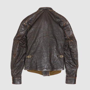 Crafted from supple washed lamb leather, this jacket offers a soft, broken-in feel and timeless appeal. Designed with a clean 1930s German-inspired silhouette, it features a single-breasted button front and a classic cafe racer collar for a sleek, minimalist look. Ideal for riders and style enthusiasts alike, it balances vintage aesthetic with modern wearability.