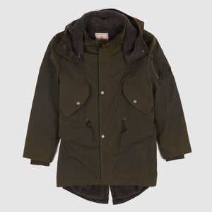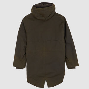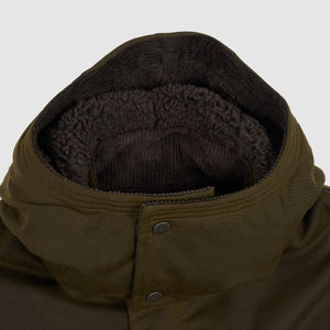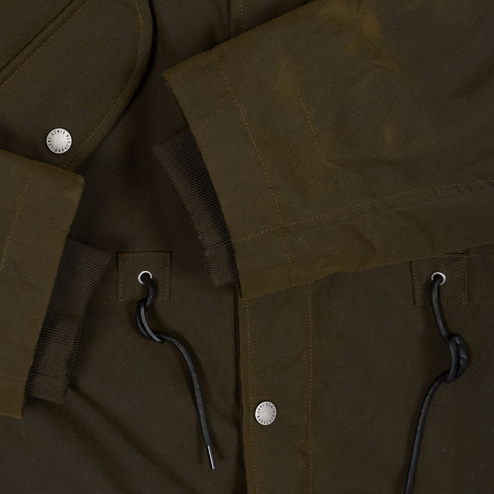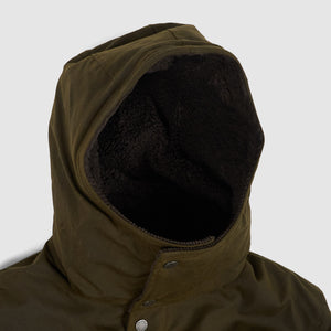 Engineered for the elements, this waxed cotton parka is crafted in collaboration with British Millerain, featuring a loose, comfortable fit and a Thermore® EcoFill insulation made from recycled plastic bottles. Designed with a removable hood, handwarmer chest pockets, and an adjustable waist drawcord, it combines rugged functionality with eco-conscious warmth. The teddy bear-effect lining adds a touch of comfort, making it ideal for both wilderness trails and urban adventures.