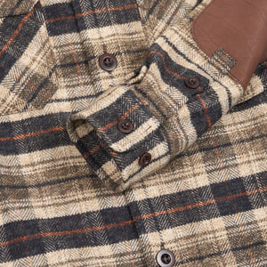 A signature deconstructed piece from Junya Watanabe, blending classic plaid cotton with a corduroy back panel. Detailed with a leather yoke, elbow patches, and double breast pockets, it reinterprets traditional workwear through an avant-garde lens.