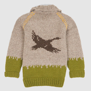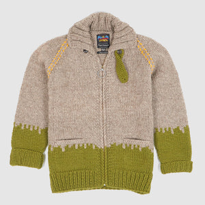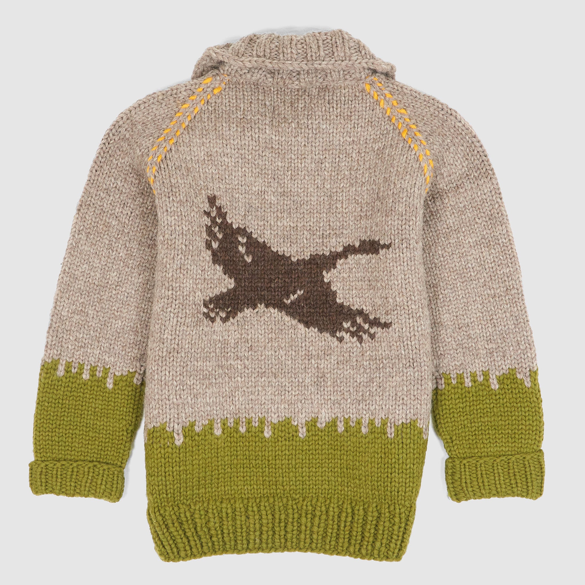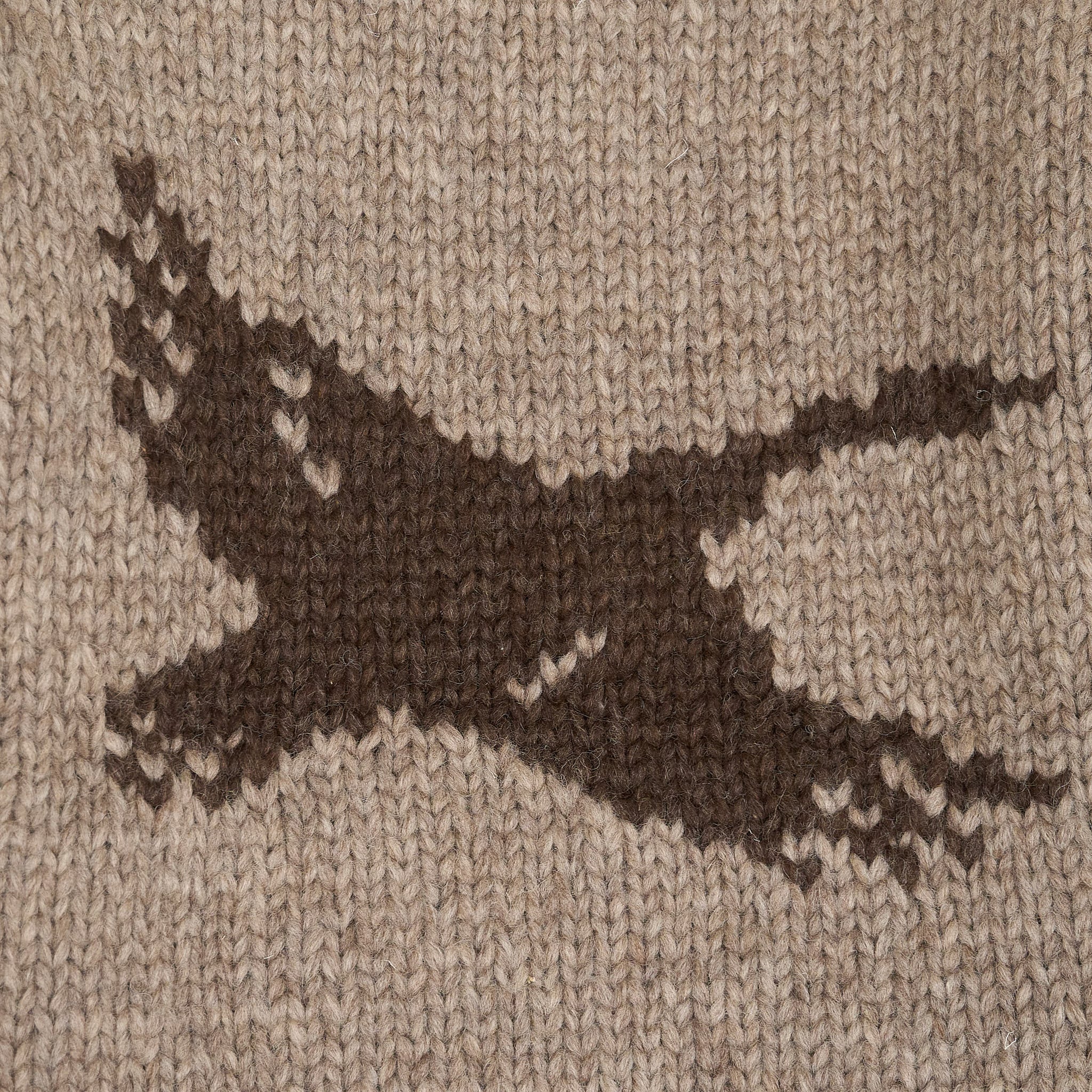 A collaborative piece blending British design heritage with American outdoor legacy, this knit jumper draws direct inspiration from Eddie Bauer's vintage archives spanning the 1920s to 1950s. Meticulously hand-knitted by Granted, the design features a classic flying goose motif and hunting-inspired patterns, carefully placed for authentic appeal. Finished with custom zippers and a collar button closure, this piece reflects Nigel Cabourn’s commitment to functional, long-lasting design rooted in history and craftsmanship.