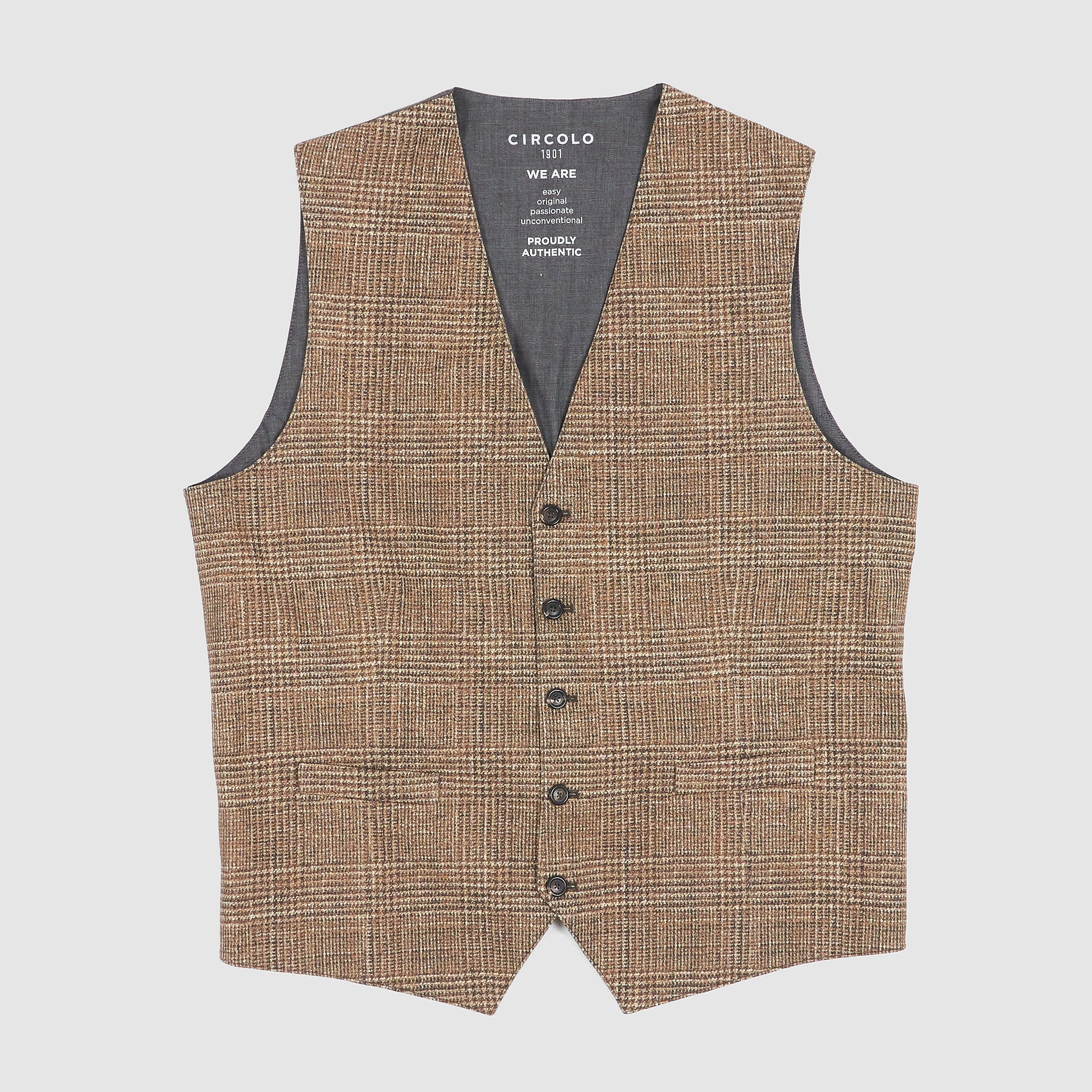 Stylish and easy to wear is this wool blend vest. Made from extra soft cotton. Front lining and back part is made from cotton. Five button closure, two small pockets and adjustable back strap.