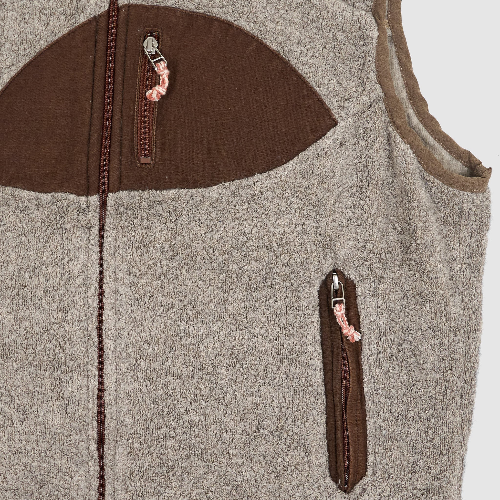A sleeveless version of Cottle’s iconic fleece, crafted in Japan from a blend of Supima cotton and yak wool for exceptional softness and warmth. Designed with a focus on natural materials and artisanal techniques, it features a linen-cotton lining, functional zippered pockets, and reinforced handwoven canvas details. Each piece is handmade in a historic Kojima textile factory, embodying the simplicity and depth of Japanese aesthetics.
