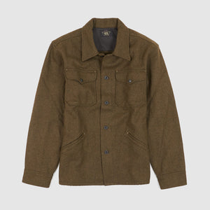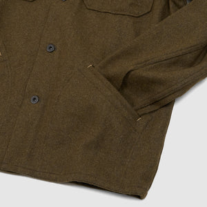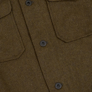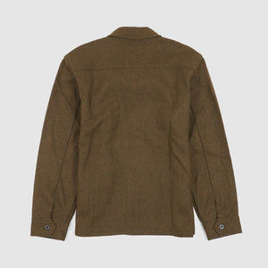Crafted from a wool-viscone twill blend with a pronounced texture, this overshirt combines tailored structure with rugged versatility. Featuring black oxidized metal buttons, a twill-lined back yoke, and a mix of snap chest pockets and slanted waist pockets, it bridges the gap between refined outerwear and functional workwear.