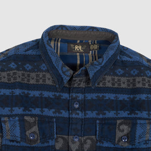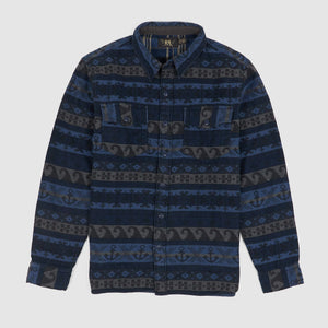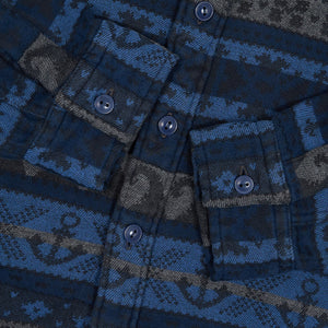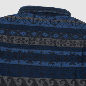 Crafted from a substantial double-faced jacquard, this shirt features a brushed exterior woven with a classic anchor-and-wave motif, contrasting a yarn-dyed plaid interior. Pre-washed for a softened, timeworn hand, it’s built with hidden twill reinforcements and functional workwear details for enduring wear.