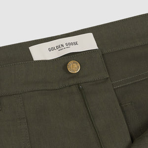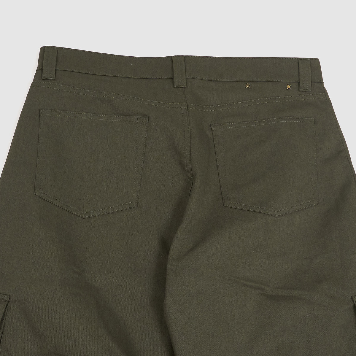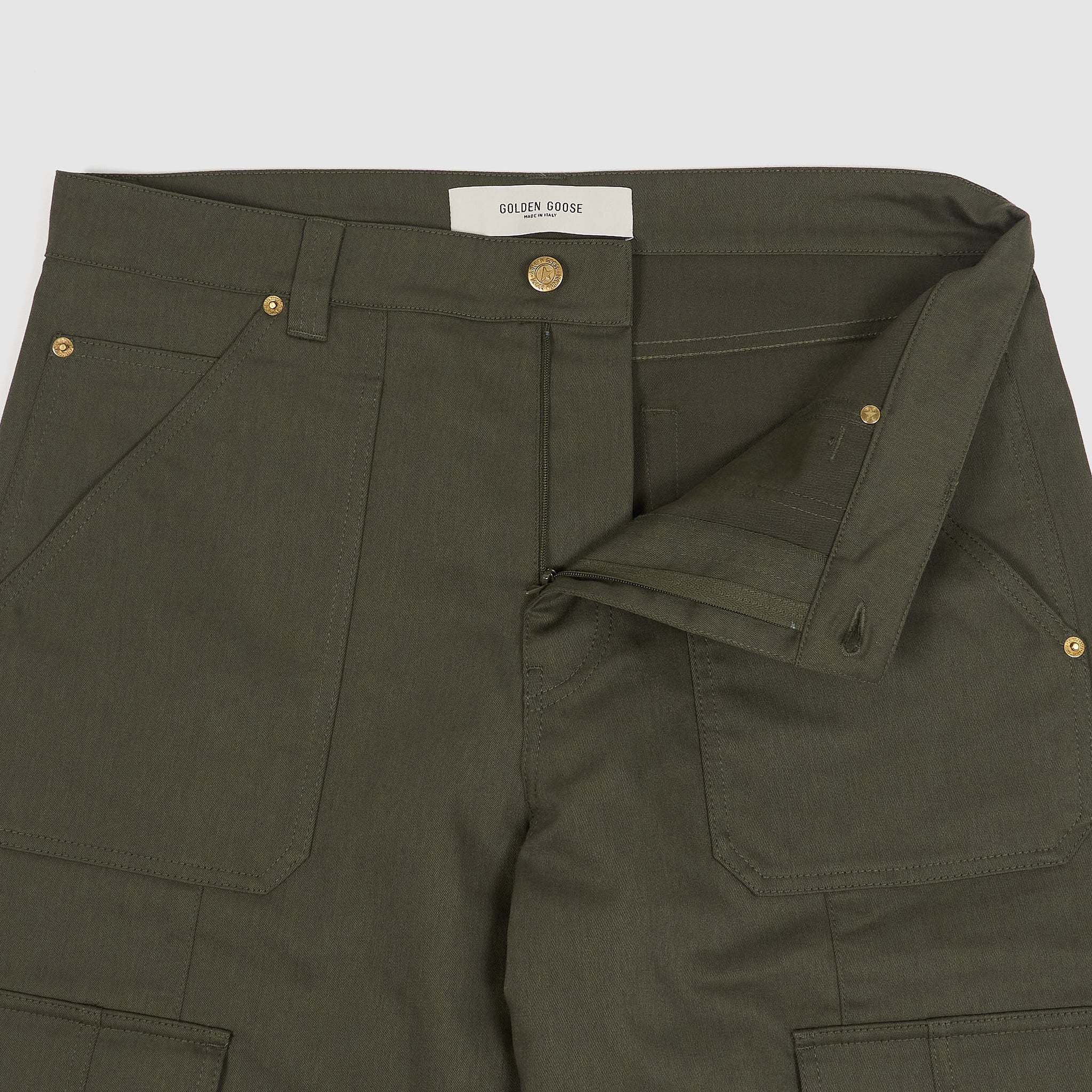 Embodying our heritage of durable design, these olive cargo pants are crafted to be your everyday companion through all of life's moments. The wide-leg silhouette features eight functional pockets (six front, two back) and distinctive gold star detailing, blending utility with signature style.