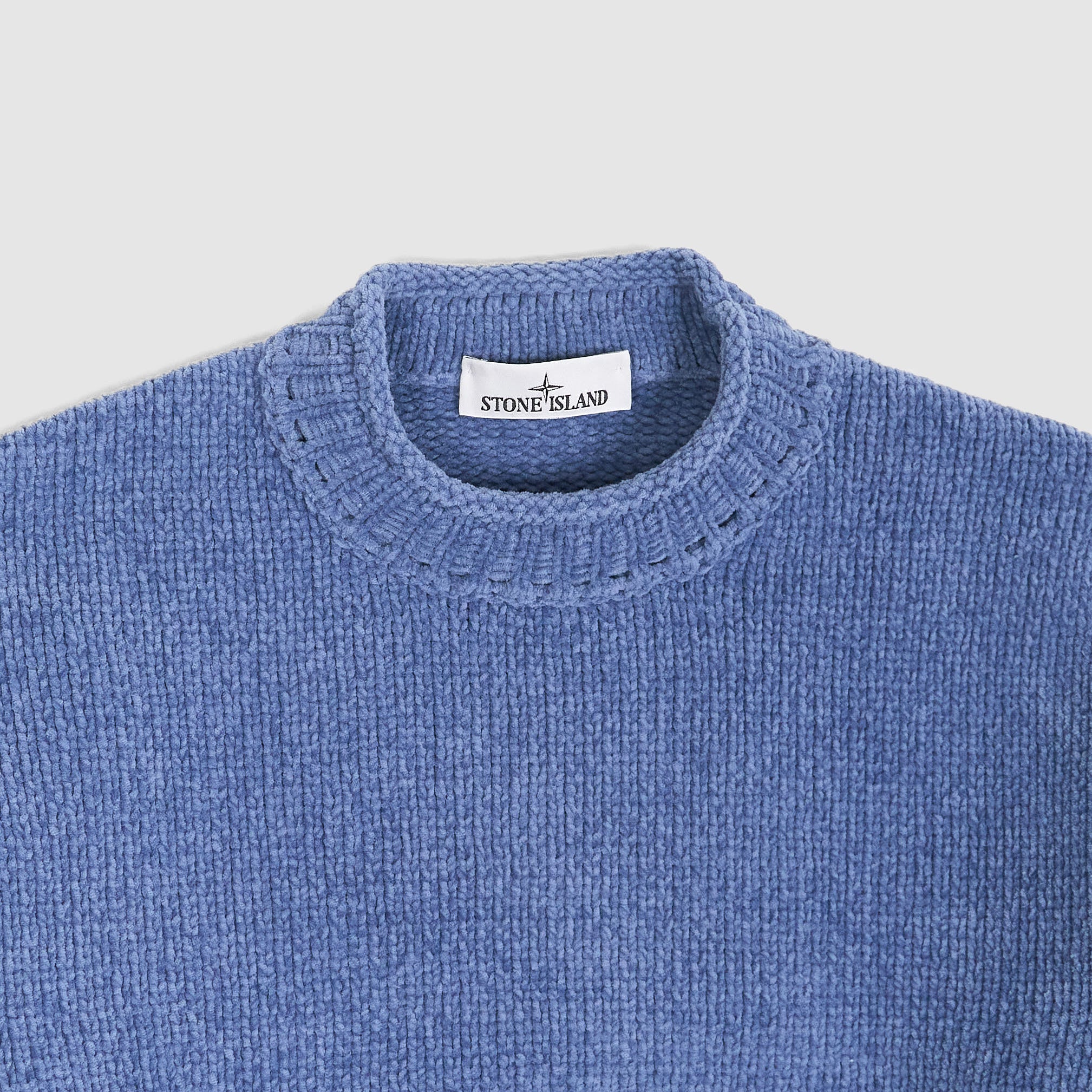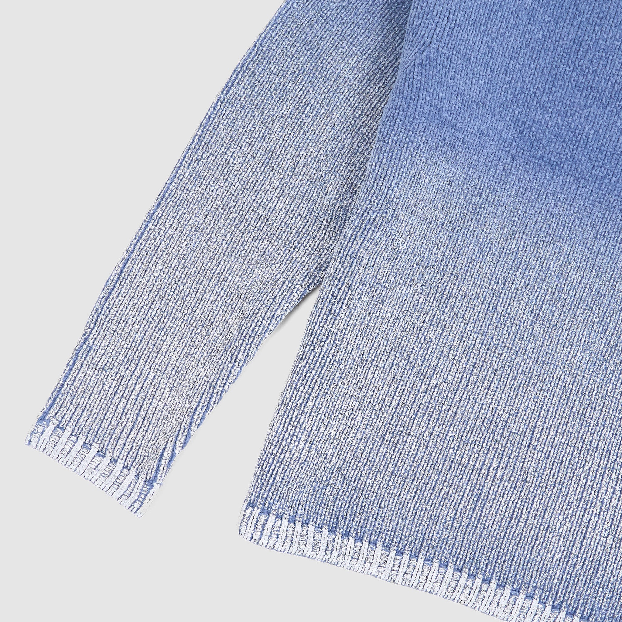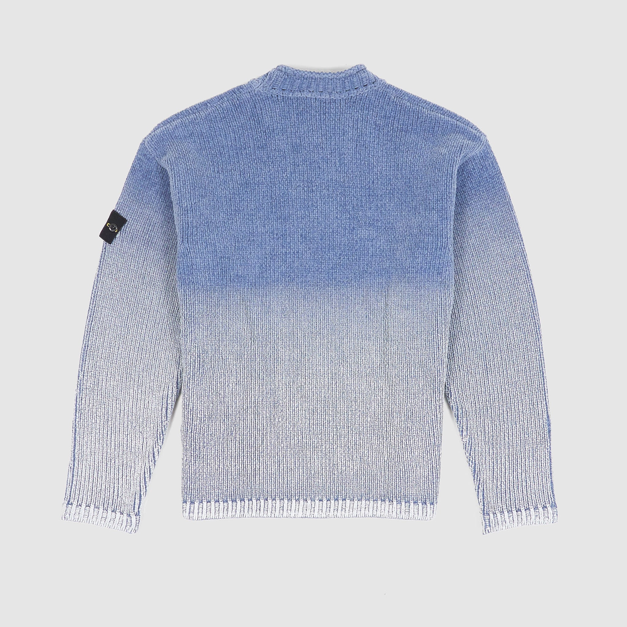 Crafted from soft cotton chenille, this crewneck sweater features a unique pigment-dyed gradient effect, with each knitted panel individually printed to create a seamless tonal transition. Designed with a relaxed oversized fit, it includes a ribbed neckline with rolled trim, ribbed cuffs and hem, and the signature Stone Island badge on the left sleeve. Lightweight yet textured, it offers understated style with artisanal detail.