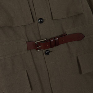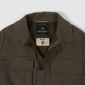 Designed by menswear expert Nigel Cabourn, this coat is crafted from Ventile fabric, woven in Lancashire, UK. Inspired by early trench coats, it features a functional backpack compartment accessed via a side-mounted zipper, blending heritage design with modern utility. A leather belt adds a refined touch.