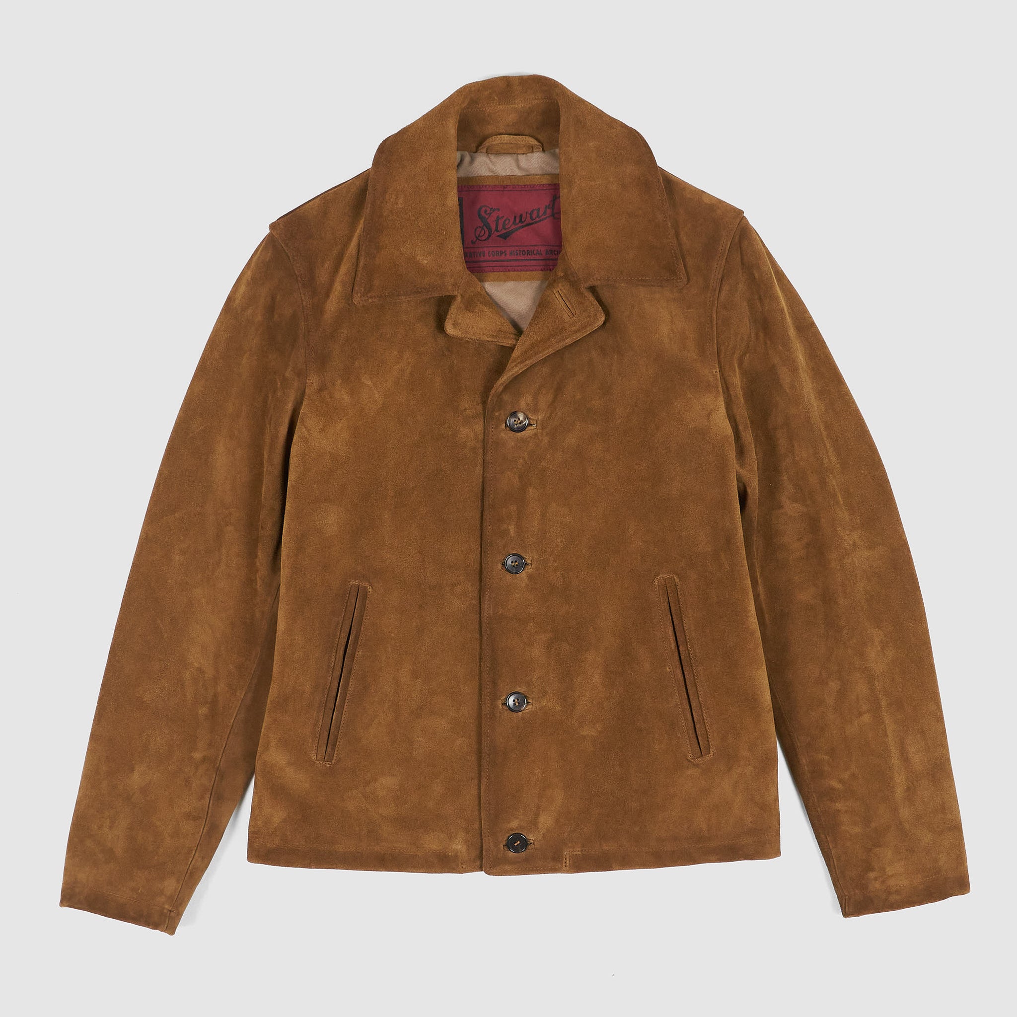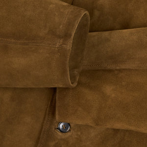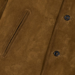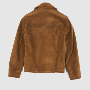 This exclusive blazer-style jacket is crafted from premium rough-out cowhide leather, known for its natural texture and robust character. The warm tobacco color enhances its refined yet relaxed look, while the lightly brushed finish gives the surface a soft, matte appearance that adds depth to any outfit.