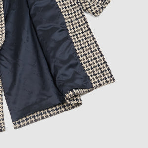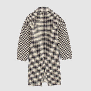 A timeless single-breasted coat crafted from 100% virgin wool flannel in a sophisticated houndstooth pattern. Designed for enduring elegance, it features a classic collar, multipockets, and full lining for structured warmth. The 97cm length offers versatile coverage, while the wool's natural insulation ensures comfort in cooler seasons.