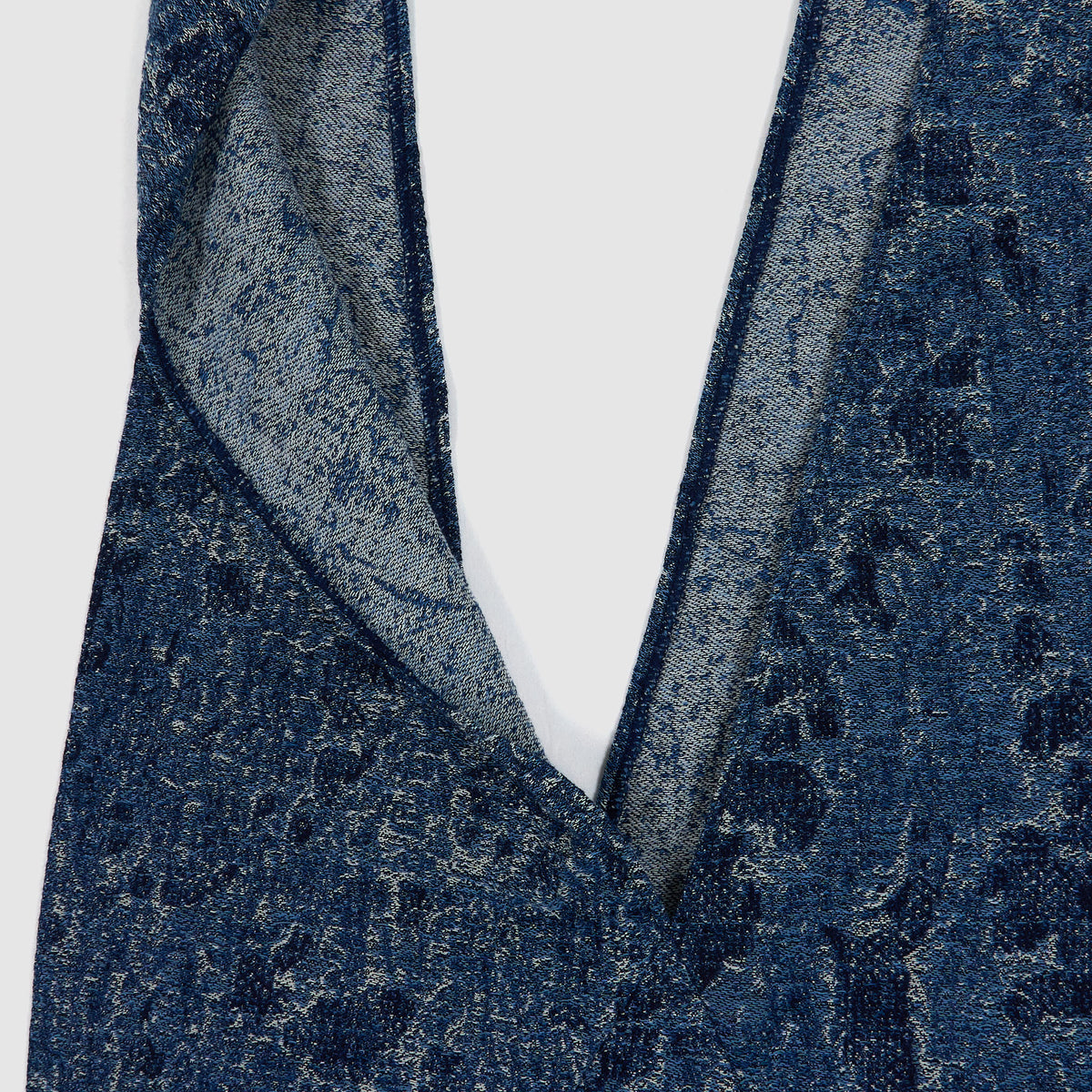 A spacious tote woven from sturdy cotton jacquard fabric, featuring a three-dimensional boro-inspired pattern that catches the light and eye. The deep indigo hue comes alive through the textured weave, revealing subtle variations in color with every fold. Designed in Japan, this lightweight yet durable bag offers a single open compartment for easy access, making it as practical for daily errands as it is striking in its craftsmanship.