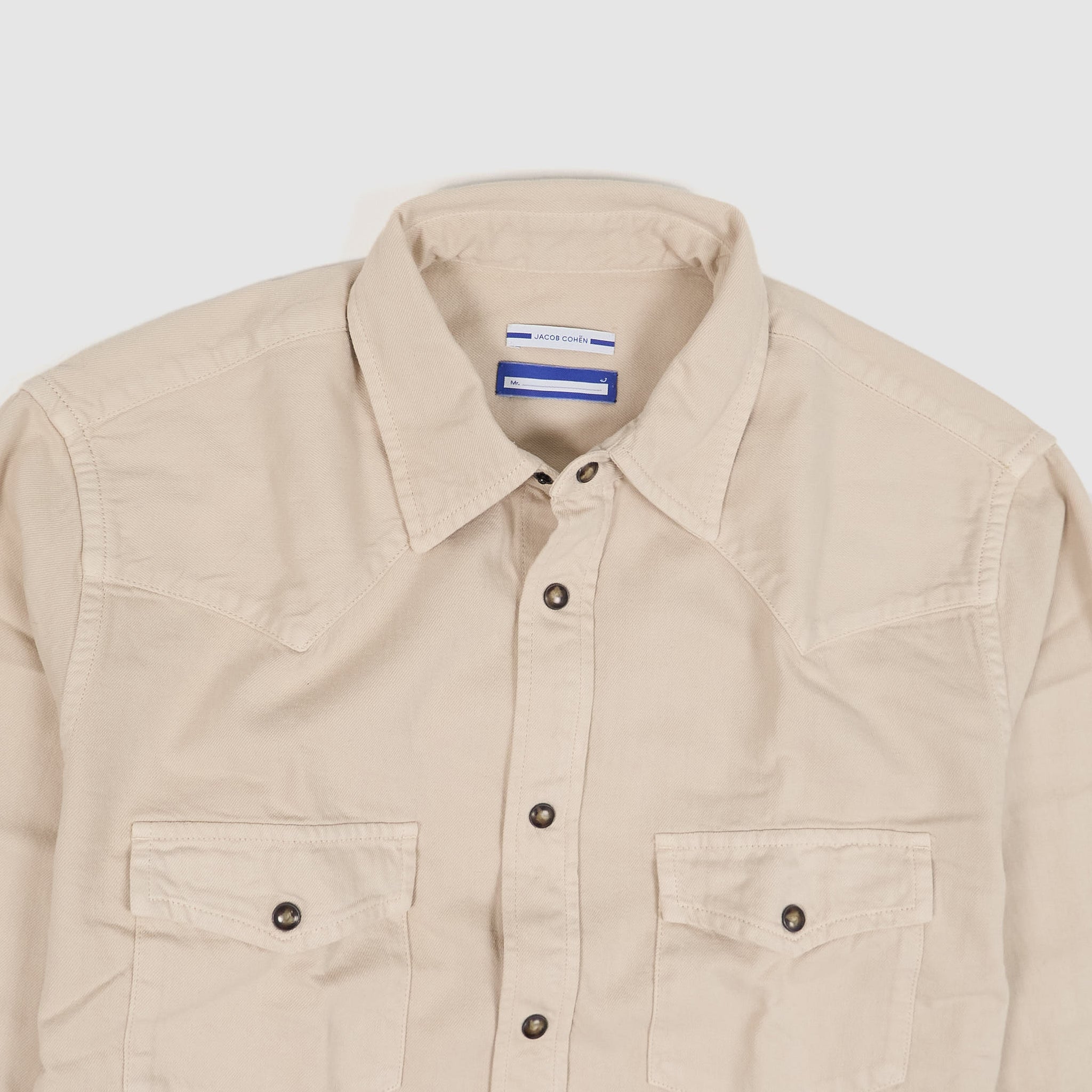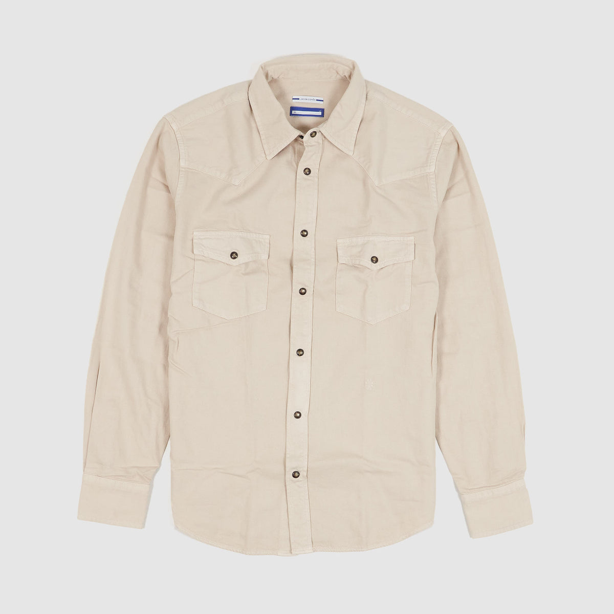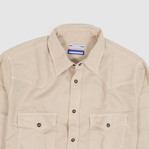 The spirit of the frontier meets Italian craftsmanship in this timeless Western shirt. Cut from pure, garment-dyed cotton in a soft almond hue, it develops richer character with every wear. Authentic details—from horn-style snaps to embroidered yokes—tell a story of adventure, whether you're pairing it with denim for a classic look or layering it under a blazer for modern contrast.