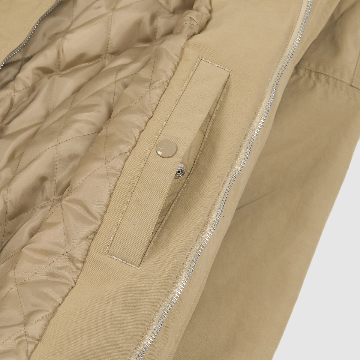 Crafted using traditional shio-chiku (salt-shrinking) dyeing methods, this 64-count derby jacket achieves an authentically worn-in character from the first wear. The distinctive chest-to-shoulder panel construction creates dynamic visual lines, accented by a left-chest logo patch. Inside, diamond-quilted polyester taffeta lining adds lightweight structure, while original snap buttons and a sewn-in maker's label honor artisanal details.